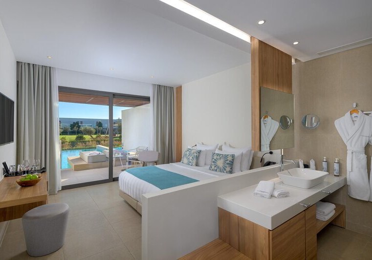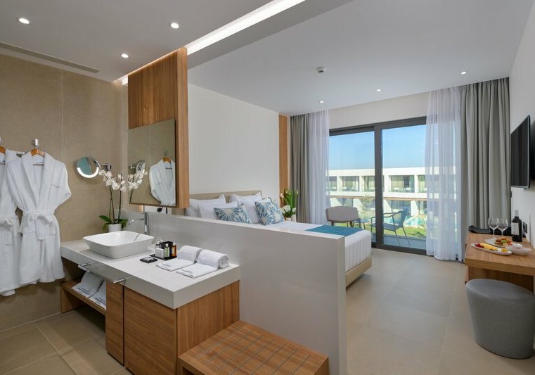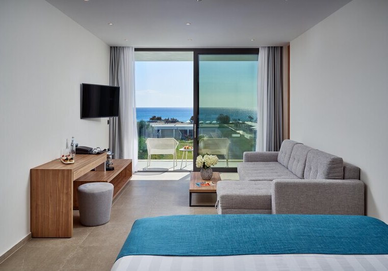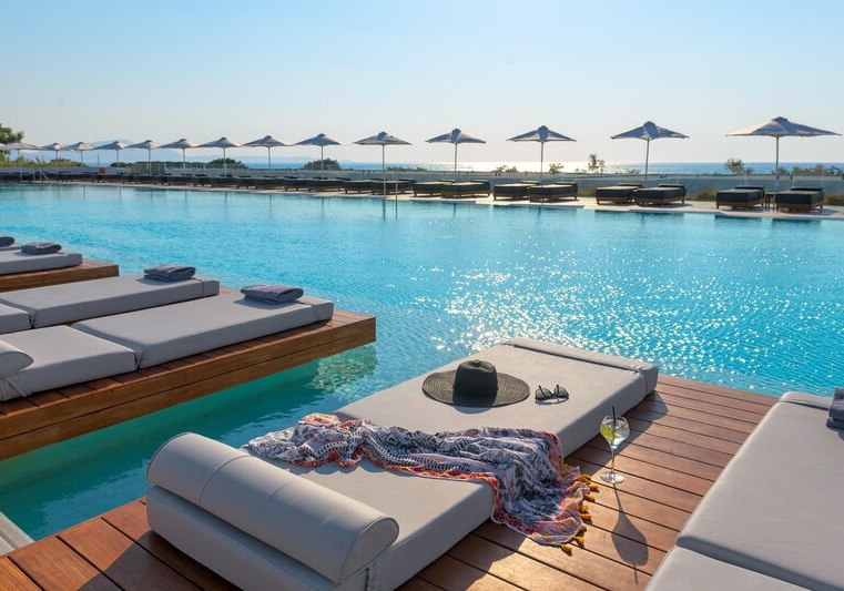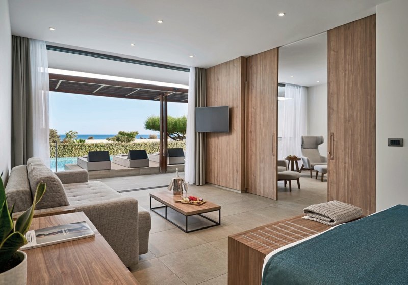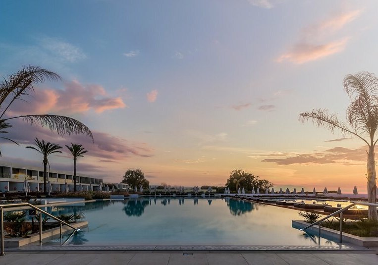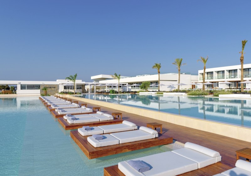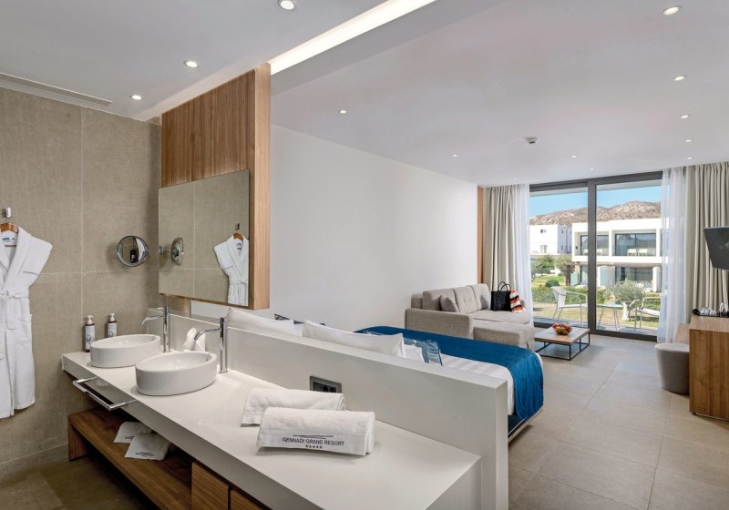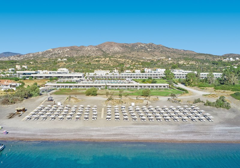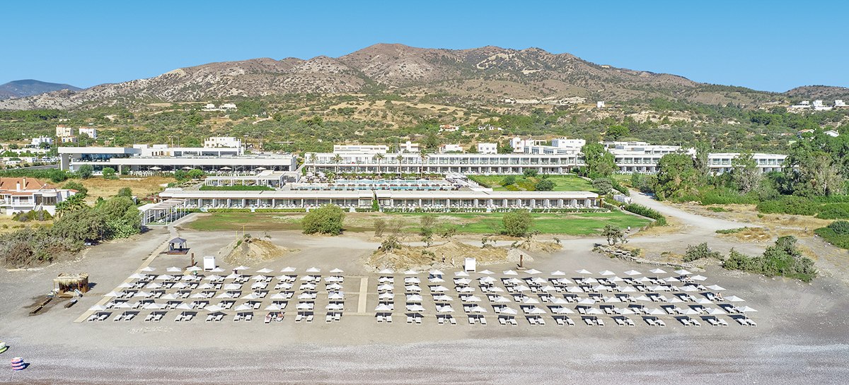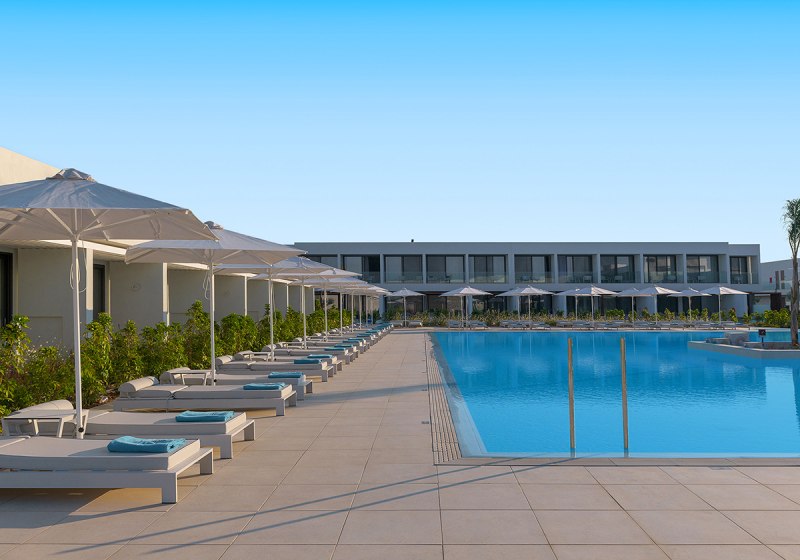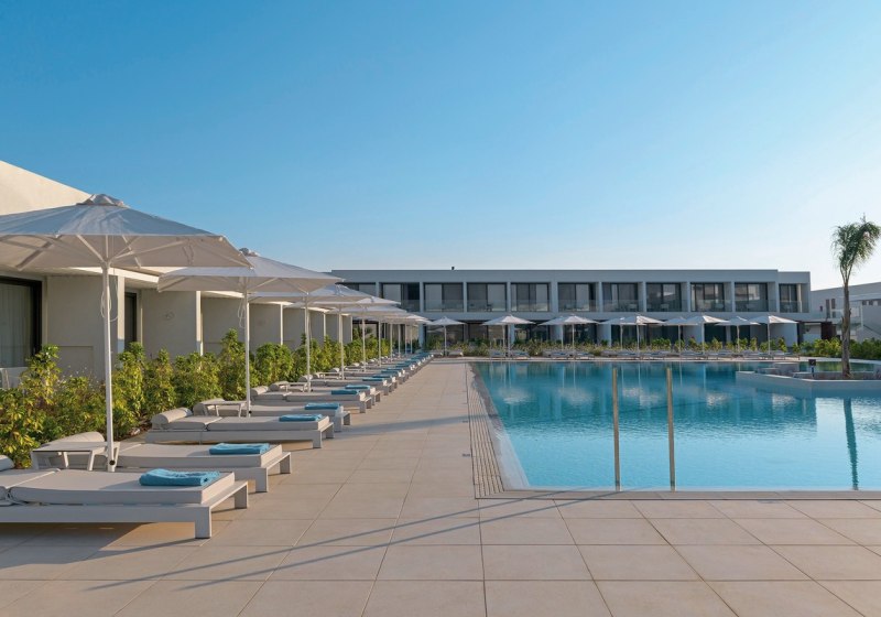Im Gennadi Grand Resort wohnt Ihr direkt am Kiesstrand von Gennadi auf Rhodos. Die Anlage wirkt modern und klar strukturiert, mit ruhigen Innen- und Außenbereichen, die Euch Raum für gelassenes Tempo geben. Familien, Strandurlauber und Paare finden hier gleichermaßen ein passendes Umfeld, vom weitläufigen Poolbereich bis zu geschützten Ecken für längere Lesestunden. Dank verlässlichem WLAN bleibt Ihr auch am Meer gut verbunden.