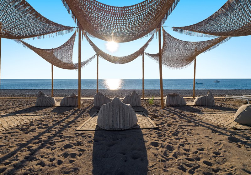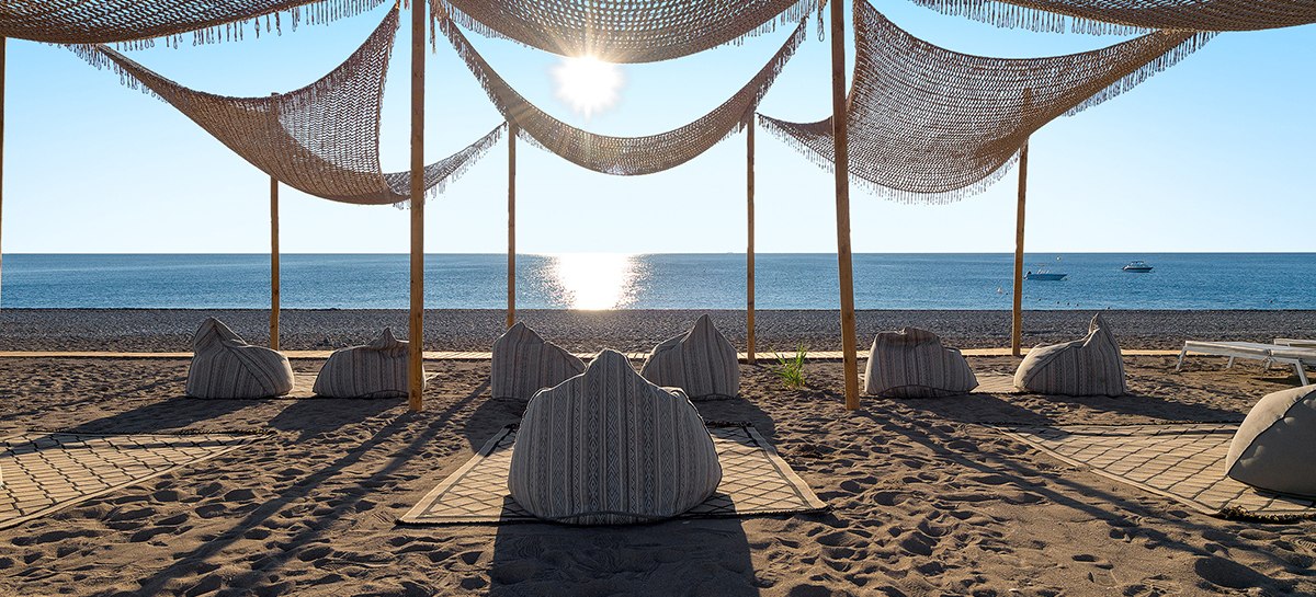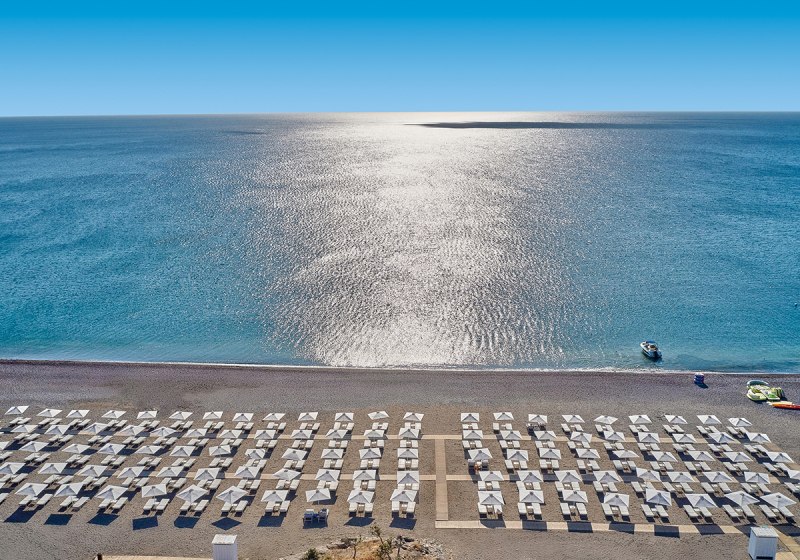 - Strandsetup: Liegen, Schirme und Badetücher direkt am Strand.