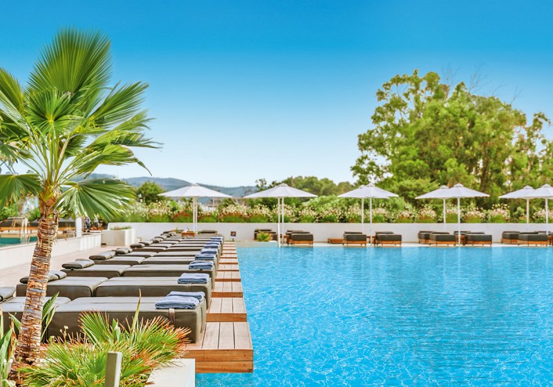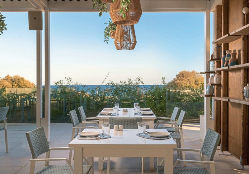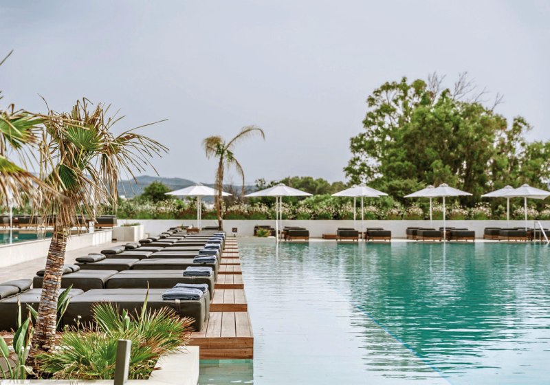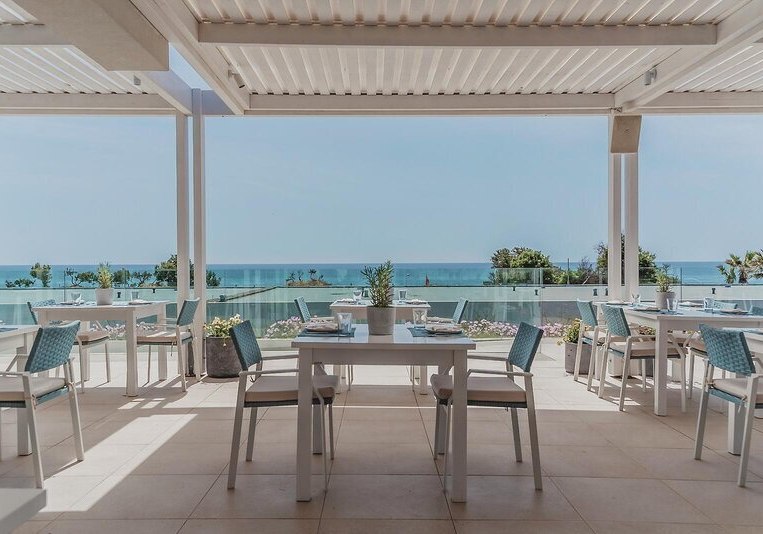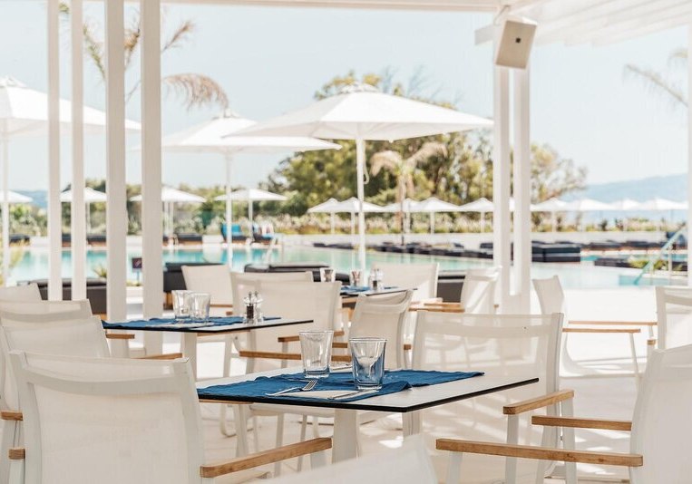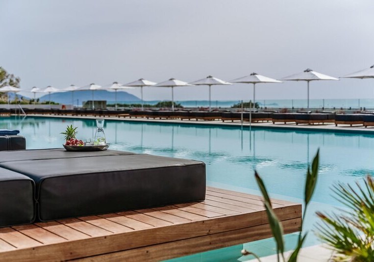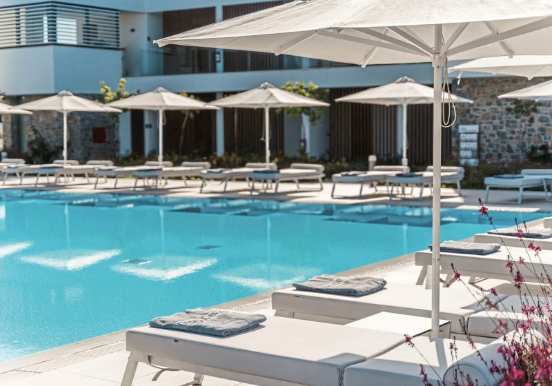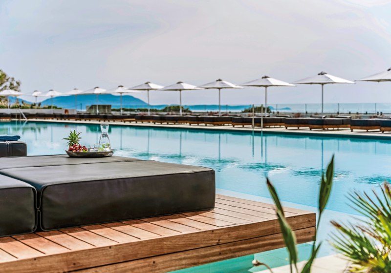 Zwischen Sonnenliegen und schattigen Terrassen wechselt Ihr mühelos vom Bad im Meer zum Besuch einer der Bars. Kulinarisch führt Euch das Haus durch verschiedene Atmosphären – vom Frühstück über mediterrane À-la-carte-Küche bis zum Fine Dining. Für Kinder stehen ein Becken und Spielplatz bereit, während Ihr den Abend an der Premium Gin Bar mit ruhigem Takt ausklingen lasst. Highlight: Direktlage am Kiesstrand mit kurzen Wegen zwischen Zimmer, Pool und Meer.