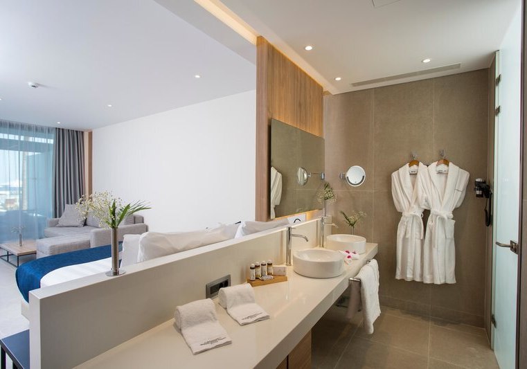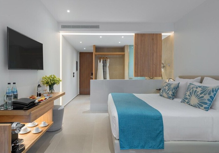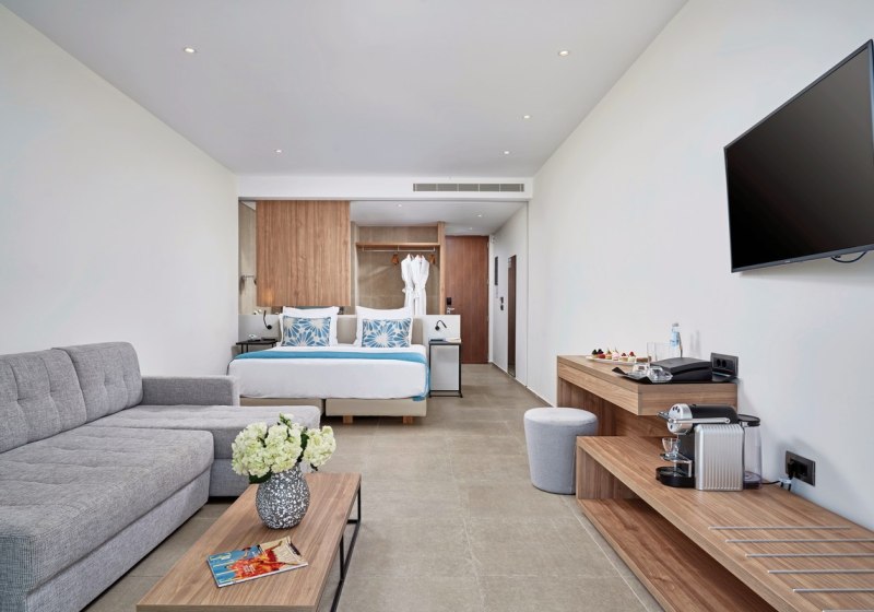 Kulinarisch seid Ihr breit aufgestellt: Vom Hauptrestaurant Philoxenia und dem Frühstücksrestaurant Level 2 führt der Weg zu Edesma für Fine Dining. Mediterrane Akzente setzt das À-la-carte-Restaurant Ten2One, während das Grillrestaurant STK und das griechische Ouzo regionale Noten vertiefen. Live-Kochen schafft zusätzliche Dynamik am Buffet.