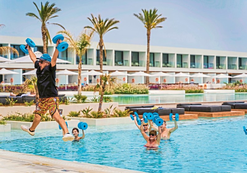 Wer aktiv bleiben möchte, startet im Fitnesscenter oder am Strand. Auf dem Programm stehen Aqua-Fitness und Wasseraerobic, dazu Beachvolleyball und Boccia für lockere Teamrunden. An Land erweitert Ihr das Repertoire um Tennis, Yoga und Pilates – je nach Tagesform und Energie.