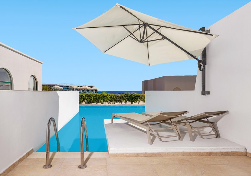 - Am Strand: Liegen und Schirme am Meer bereits inklusive.
