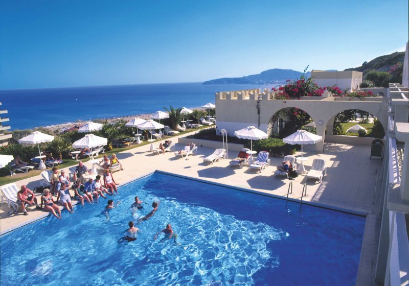 Calypso Palace verbindet Hanglage mit Blick auf Faliraki, einen erhöhten Pool auf Etage vier und kurzen Zugang zum Strand. Abende mit Shows und Live-Musik runden den Tag ab, während Ihr tagsüber wahlweise Ruhe oder Aktivität im Schwesterhotel wählt.