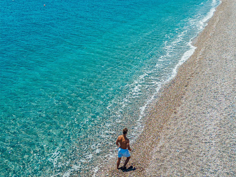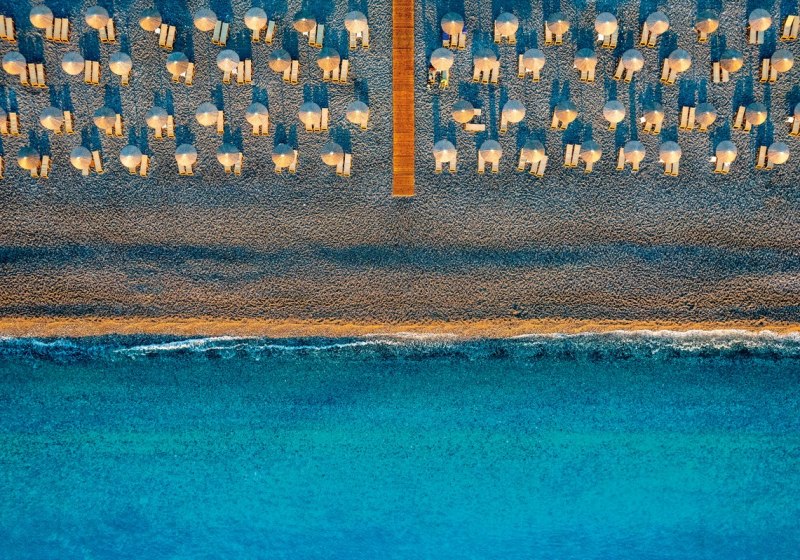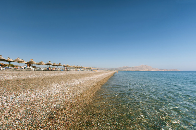 Ihr urlaubt an der Ostküste von Rhodos, direkt am Kalathos-Strand, der mit der Blauen Flagge ausgezeichnet ist. Vom Haupthaus trennt Euch rund 250 Meter bis zum Strand, die Villen liegen etwa 100 Meter entfernt. Kalathos erreicht Ihr nach ungefähr 700 Metern, die berühmte Kulisse von Lindos liegt in etwa sechs Kilometern Entfernung. Eine Bushaltestelle befindet sich rund 400 Meter vom Resort, sodass Ihr die Insel flexibel entdeckt. Am Strand warten Liegestühle, Sonnenschirme und eine Strandbar; in der Anlage führen Wege über Terrassen und durch Gärten zu Pools, Bars und Restaurants. Die Lage wirkt angenehm ruhig, mit kurzer Verbindung zu den historischen und landschaftlichen Reizen rund um Lindos. So kombiniert Ihr Strandtage mit kulturellen Ausflügen, ohne lange Transfers einzuplanen. Highlight: Kurze Distanzen zu Strand, Bushaltestelle und Lindos für flexible Tagesplanung.