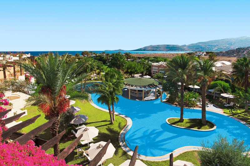 Das Hotel hat insgesamt 5 Restaurants und 4 Bars. Die verschiedenen Restaurants bieten eine Auswahl an griechischer, internationaler und italienischer Küche. Die inklusive All-inclusive-Ultra-Option bietet Gästen unbegrenzte ausgewählte lokale alkoholische und nicht-alkoholische Getränke von 9 bis 23 Uhr und Snacks von 10 bis 23 Uhr.Ausstattung