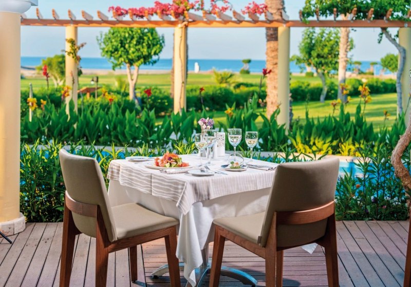Im Hauptrestaurant Symposium startet Ihr strukturiert in den Tag; abends wechselt Ihr zwischen mediterranen, griechischen, asiatischen und italienischen Akzenten in den À-la-carte-Restaurants Mesogeos, Asterias, Zen und Il Gusto. Die Bars – Il Cavaliere, Amphibia und die Strandbar Kalathos – begleiten Euch vom Nachmittag bis zum Abend. Highlight: Vier À-la-carte-Optionen mit klar profilierten Küchenrichtungen.