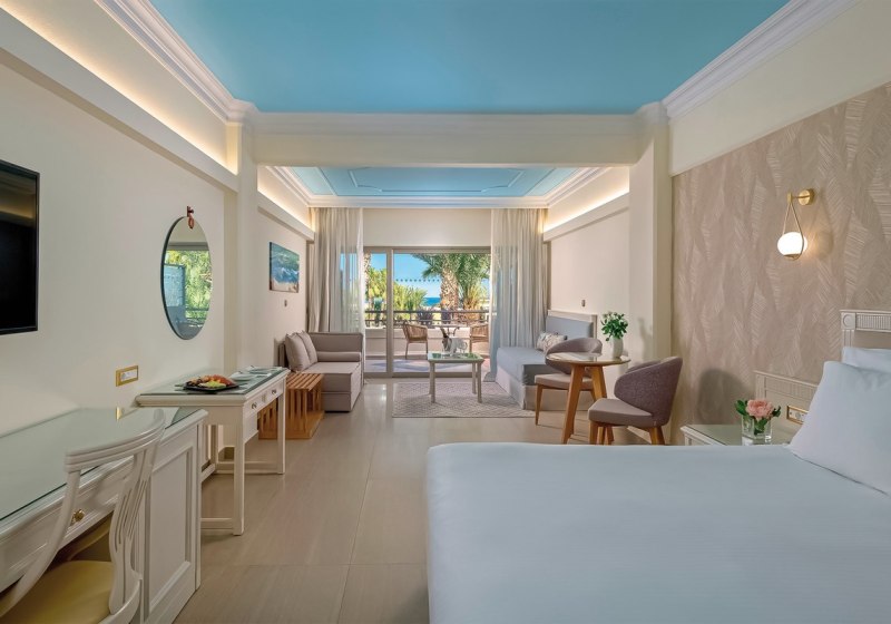 Im Atrium Palace erwartet Euch ein weitläufiges Resort mit ruhigen Innenhöfen und sechs Süßwasserpools, das durch klare Linien, viel Licht und einen gläsernen Panoramalift Akzente setzt. Ihr bewegt Euch zwischen Wassergarten, schattigen Terrassen und kurzen Wegen zum Kalathos-Strand, der mit der Blauen Flagge ausgezeichnet ist. Familien, Paare und Kulturreisende finden gleichermaßen Raum, sei es für Strandtage, Aktivität oder entspannte Stunden im Spa ab 14 Jahren. Highlight: Direkter Zugang zum ausgezeichneten Kalathos-Strand mit komfortabler Pool-Alternative.