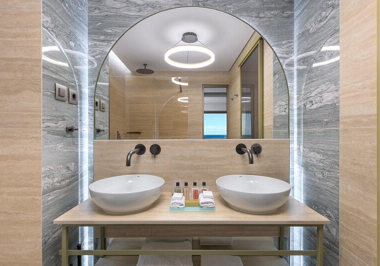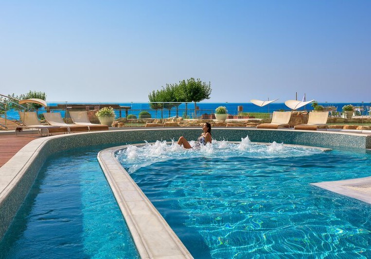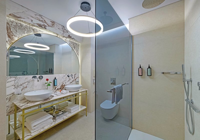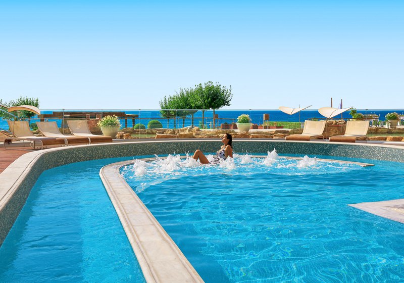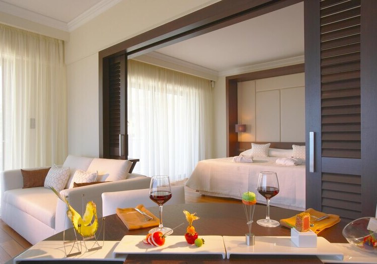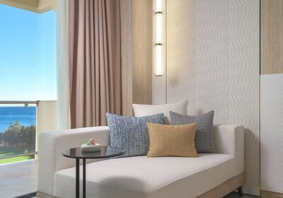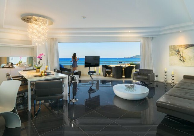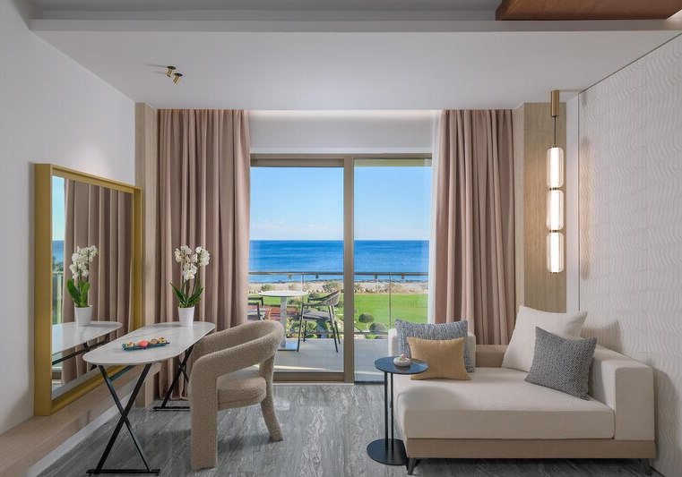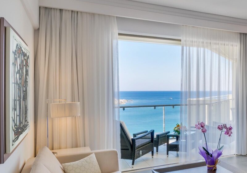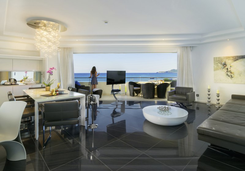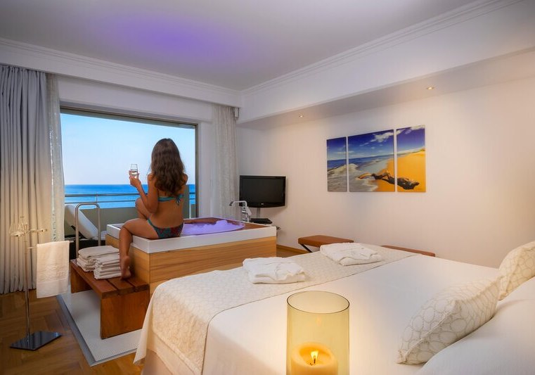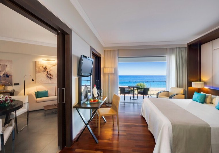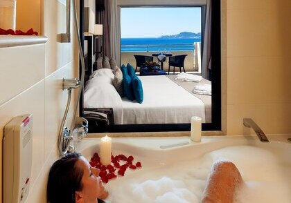 Die Elite‑Kategorien heben Komfort und Raumgefühl: Elite Zimmer mit Parkett, Hydromassage‑Badewanne, Schreibtisch, Nespresso‑Maschine, Wohnbereich und Balkon mit Meerblick. Elite Superior ergänzt ein separates WC. Die Elite Juniorsuite trennt Schlaf- und Wohnraum und bietet zwei Bäder; die Elite Suite fügt einen Essbereich hinzu.