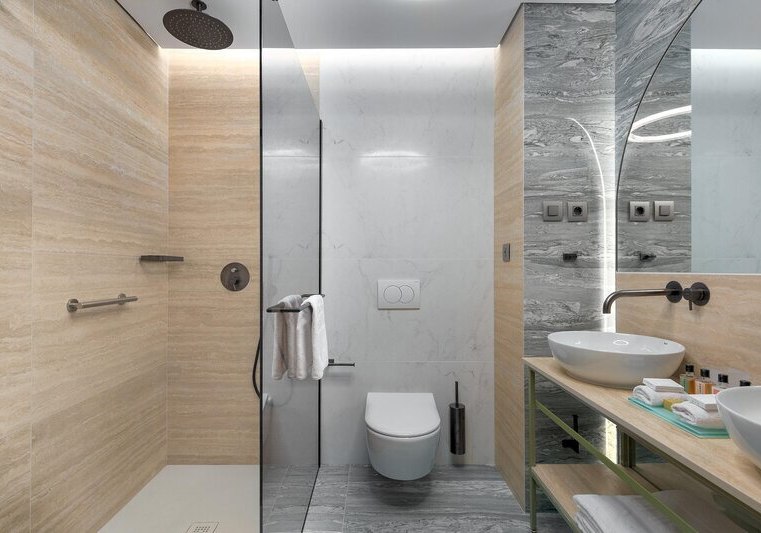 - Elite Raumgefühl: Getrennter Wohnbereich und Hydromassage‑Badewanne in Elite Linien.