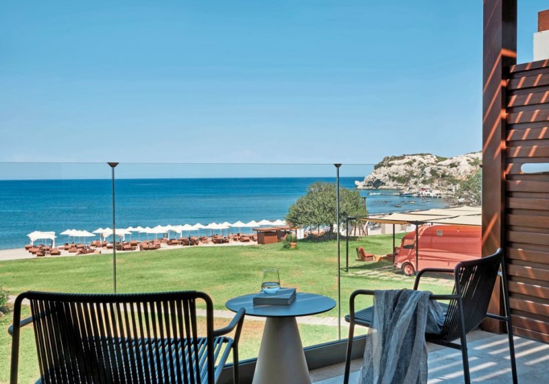 Ihr wohnt direkt am Sand-/Kieselstrand, mit kurzen Wegen vom Zimmer an die Küste. Die Bushaltestelle liegt etwa 100 Meter entfernt, sodass Ihr Rhodos-Stadt in rund 28 Kilometern und Lindos in etwa 25 Kilometern bequem erreicht. Zum Flughafen sind es circa 30 Kilometer. Die Lage an der Hauptstraße erleichtert die An- und Abreise sowie Ausflüge auf der Insel. Ein Golfplatz befindet sich in rund fünf Kilometern Entfernung. So kombiniert Ihr Strandnähe mit guter Anbindung und bringt Eure Tage flexibel zwischen Meer, Stadtbummel und Inseltouren in Balance. Highlight: Gute Erreichbarkeit – Strandlage plus Busanbindung in nur 100 Metern.