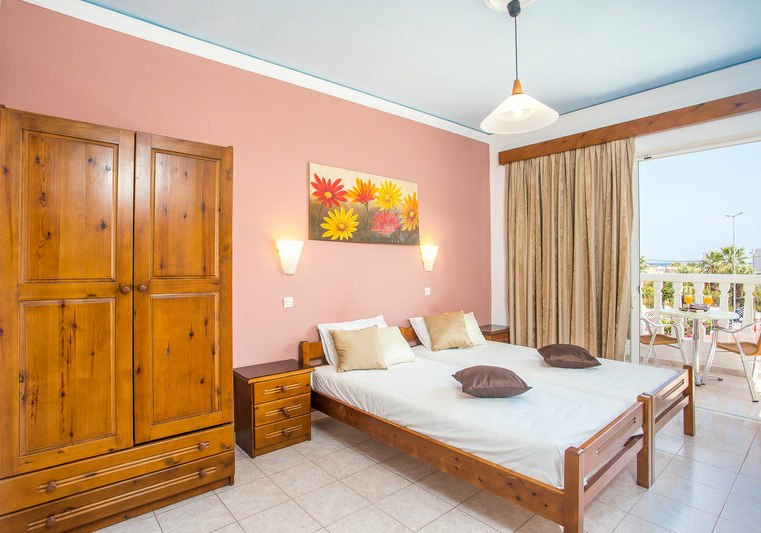 Die Studios sind auf Selbstversorgung ausgelegt: mit Kitchenette und Wasserkocher richtet Ihr Euch flexibel ein, der Supermarkt liegt 50 Meter entfernt. Der Takt des Ortes ist präsent, doch Ihr entscheidet, wann Ihr Euch hineinziehen lasst: Bars und Restaurants erreicht Ihr in etwa 300 Metern, die Bushaltestelle liegt praktisch vor der Tür. Check-in ist ab 14:00, Check-out bis 12:00, Kreditkarten werden nicht akzeptiert. Highlight: Überschaubares Erwachsenenhotel nahe Faliraki Beach, ideal für Selbstversorger.