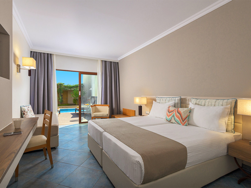 Ihr wählt zwischen Doppelzimmern, Familienzimmern, Juniorsuiten und Suiten. Einige Einheiten bieten Meerblick, Sharingpool oder einen privaten Pool. Schlafsofa und verschiedene Bettformate geben Familien und Begleitung flexible Lösungen. So richtet Ihr den Rückzugsort passend zu Eurem Tagesrhythmus ein. Highlight: Auswahl von Meerblick bis Privatpool für klar definierte Vorlieben.