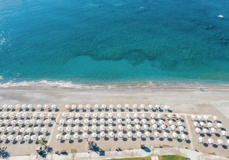 Ihr wohnt in Kiotari auf Rhodos, direkt am Sand-/Kiesstrand – ein Standort, der Strandroutine einfach macht. Das Meer liegt als täglicher Fixpunkt vor der Tür, während Ihr auf dem Areal schnell zwischen Zimmern, Pools und Strandbereichen wechselt. Der Blick öffnet sich auf die Küstenlinie, die Wege bleiben übersichtlich, die Strandinfrastruktur mit Liegen und Schirmen ist gesetzt.