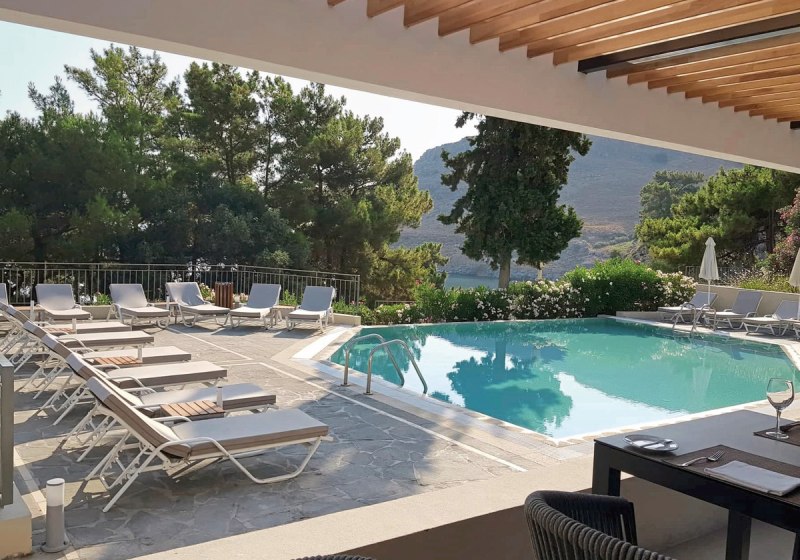 Wellness mit Sauna und Dampfbad, dezente Live-Musik am Abend und Zimmer mit Meerblick in ausgewählten Kategorien runden das Bild ab. Für eure Ferien nahe Lindos bietet das Haus ruhige Atmosphäre, verlässlichen Service und kurze Wege zwischen Zimmer, Pool und Meer.