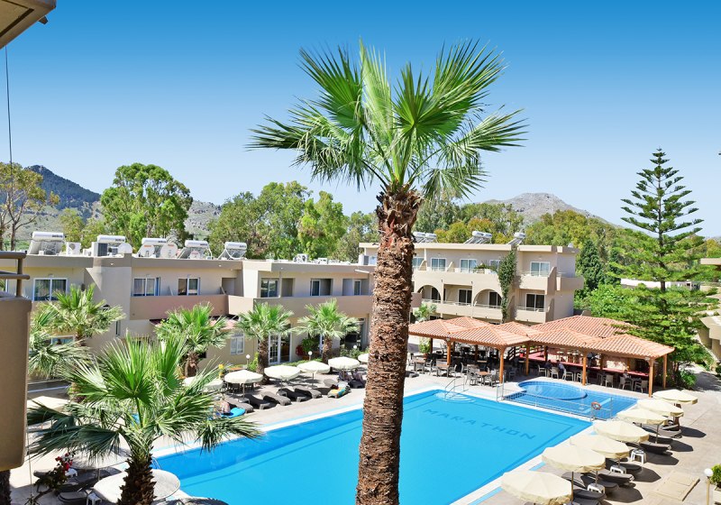 Willkommen im Marathon Hotel, einem 4-Sterne-Clubhotel in Kolymbia auf Rhodos, das Euch mit klaren Strukturen, kurzen Wegen und einem lebendigen Ferienrhythmus empfängt. Ihr wohnt nah am Geschehen, doch mit genug Raum für Rückzug zwischen Hauptgebäude und vier Nebengebäuden auf zwei Etagen, zuletzt 2009 renoviert. Highlight: Club-Charakter mit Nähe zum Strand und vielseitiger Infrastruktur.