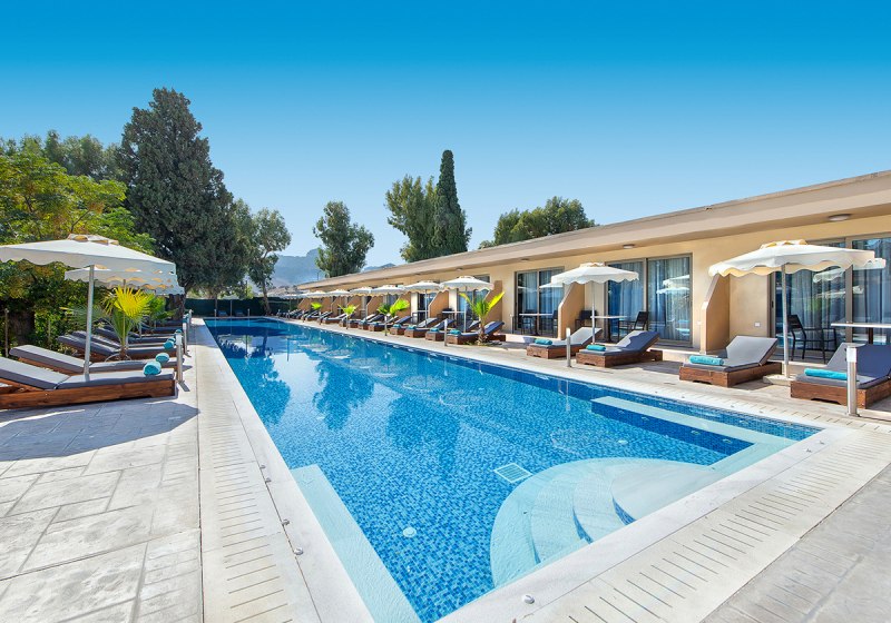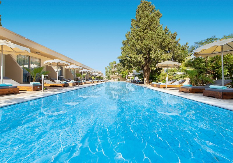 Der Tag beginnt unkompliziert, verläuft entspannt am Pool oder aktiv bei Spiel und Sport, und klingt an der Bar oder bei Live-Musik aus. Familien finden praktische Familienzimmer mit Etagenbett, Paare schätzen die unkomplizierte All-Inclusive-Verpflegung und die Lage zwischen Rhodos-Stadt und Lindos. Highlight: Durchdachte Anlage für Familien und Paare mit direkter All-Inclusive-Struktur.
