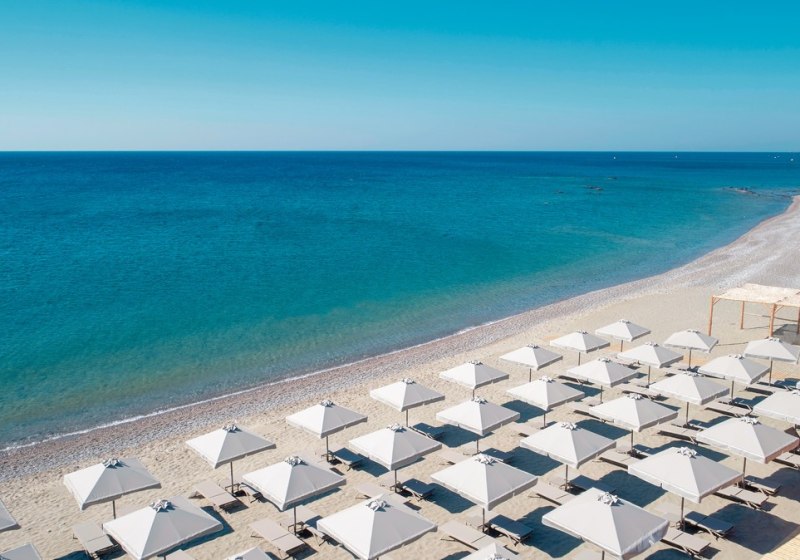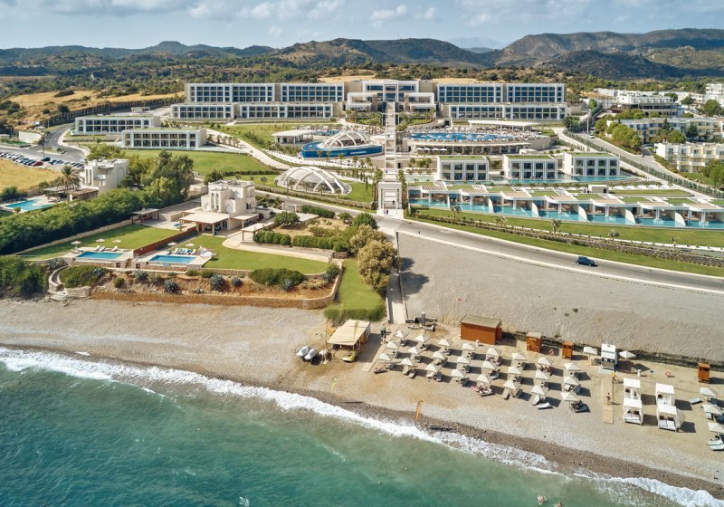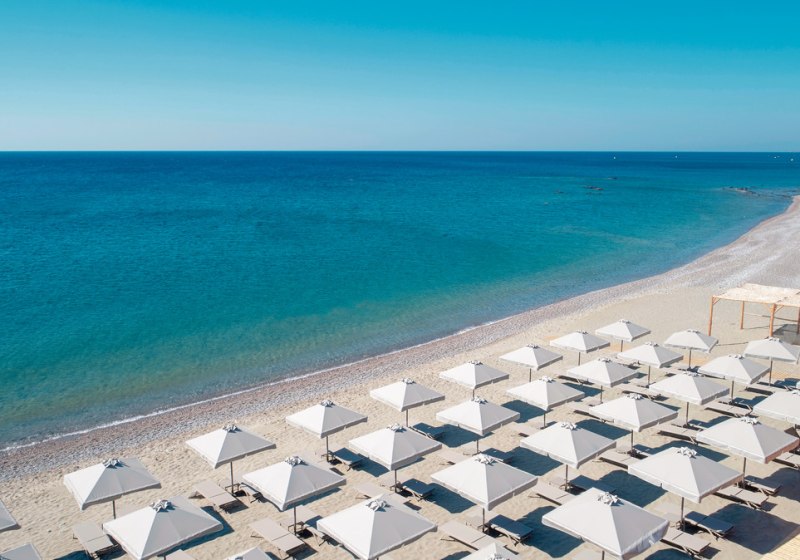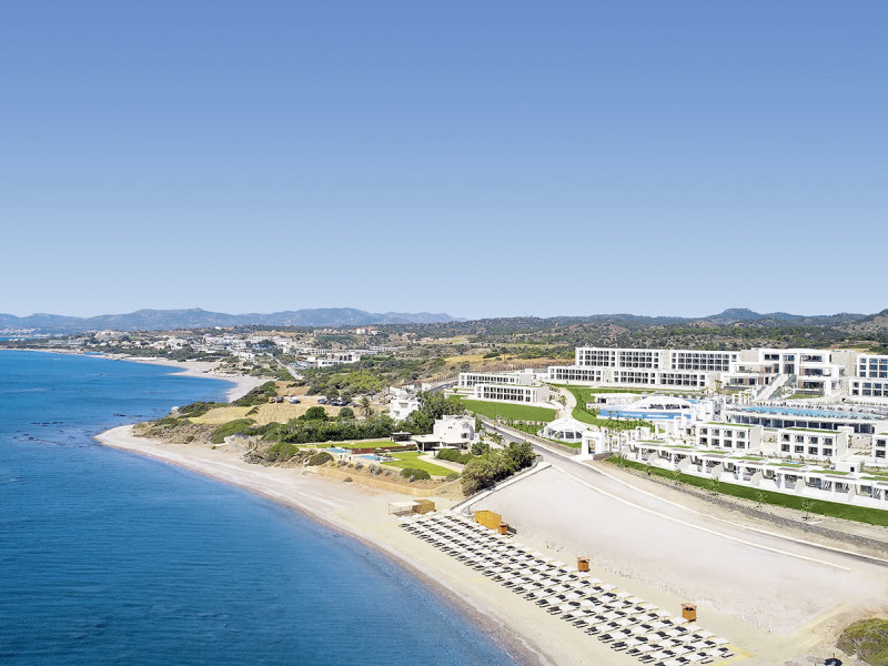 Ihr wohnt in Kiotari auf Rhodos, ruhig gelegen und nur rund 50 Meter vom Sand-/Kiesstrand getrennt, erreichbar über eine Seitenstraße. Am Strand erwarten Euch Liegen, Schirme und die Slush Beach Bar mit festen Servicezeiten. Ein Busstopp befindet sich circa 10 Meter vom Resort entfernt.