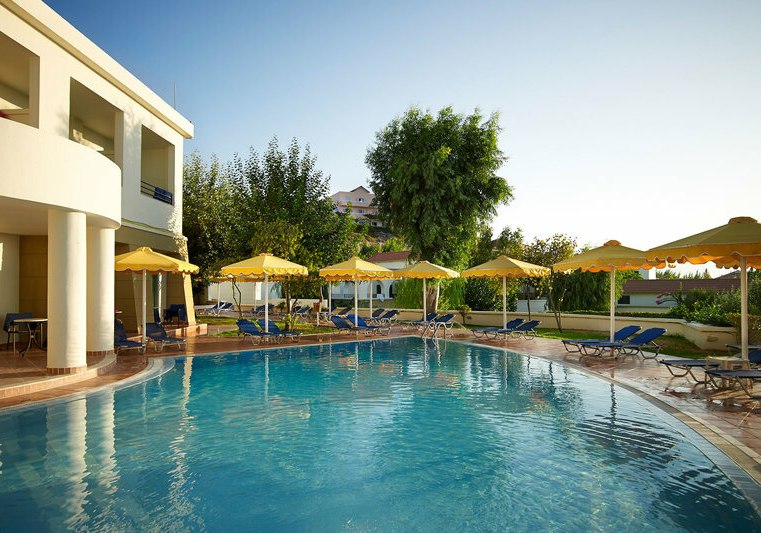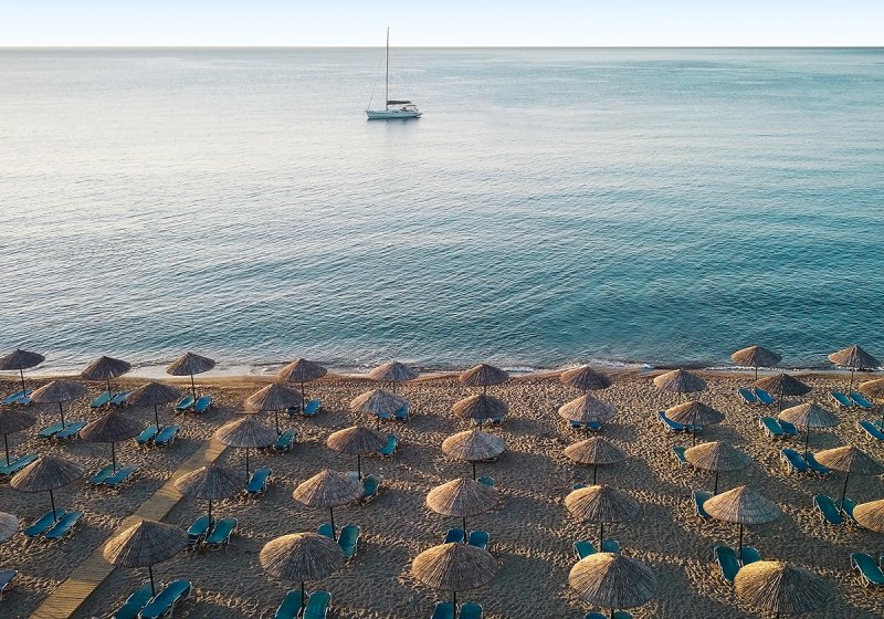 Für Ausflüge auf dem Wasser ist eine Bootsverbindung nach Lindos verfügbar. Am Strand selbst findet Ihr eine Strandbar, die Wege sind kurz. So kombiniert Ihr Strandtage mit Abstechern zu antiken Kulissen in Lindos oder urbanem Flair in Rhodos-Stadt, ohne auf die direkte Erreichbarkeit des Hotels zu verzichten. Die Umgebung wirkt strandorientiert mit klarer Ausrichtung auf Bade- und Ausflugsprogramme.