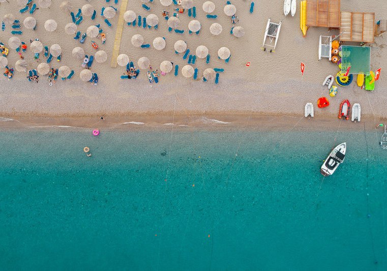 - Strandsetup: Liegen und Schirme am Strand erleichtern entspannte Badetage.