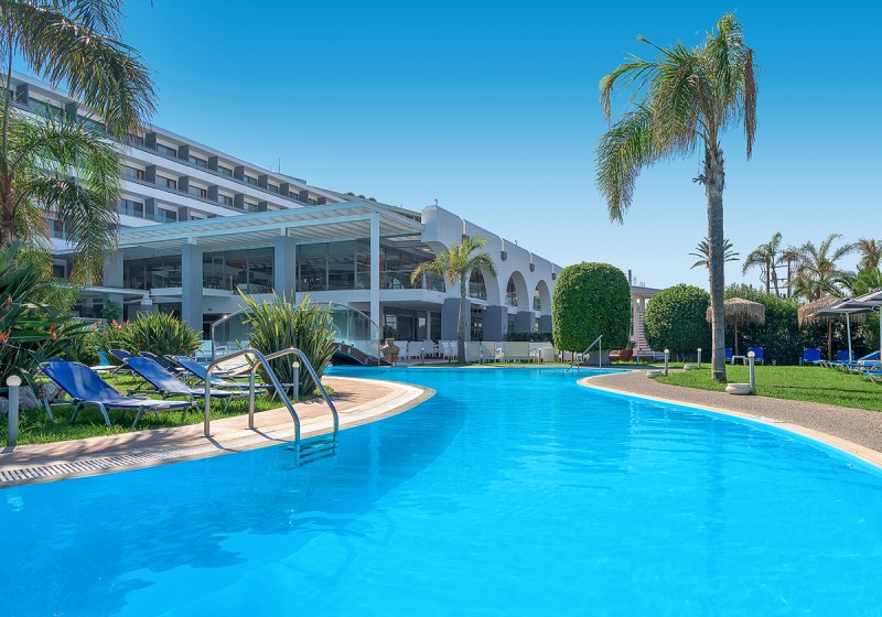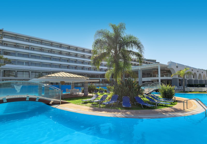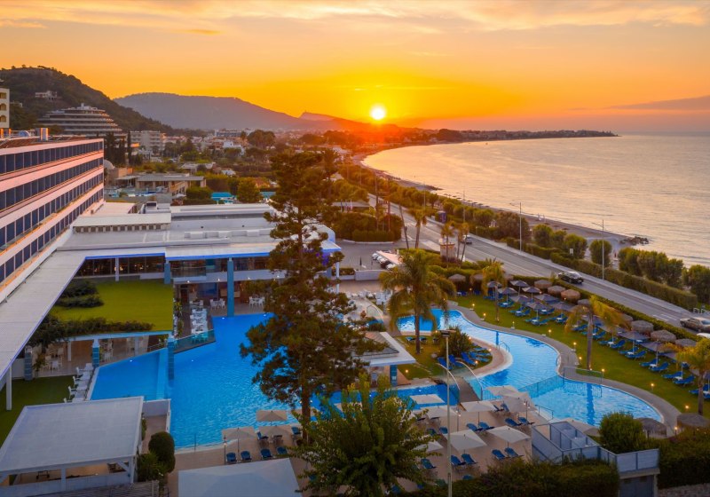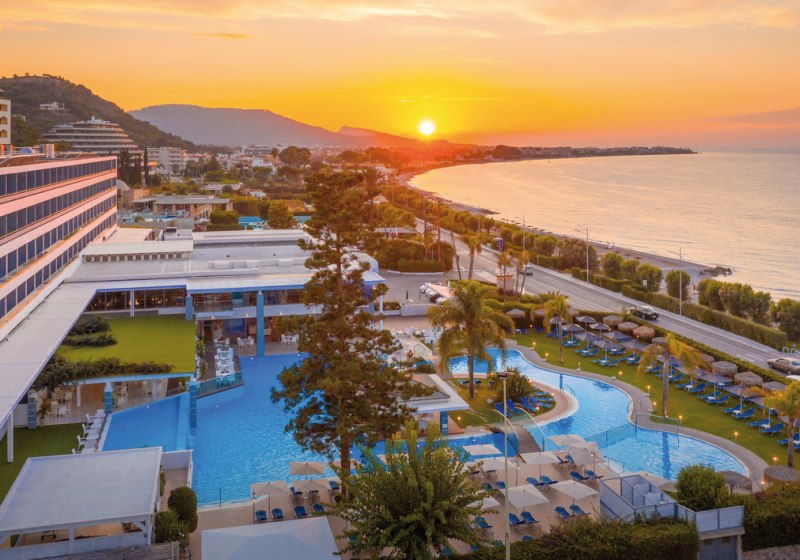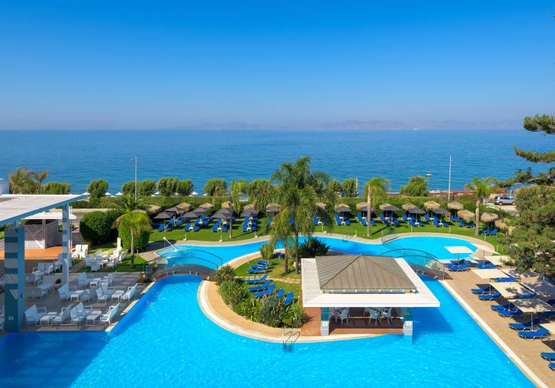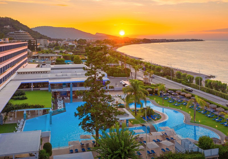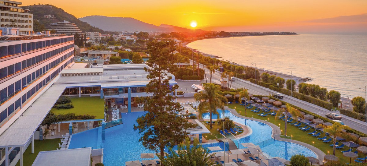 Oceanis Beach Hotel bündelt Strandnähe, zwei Pools, klare Zimmerausstattung und ein Buffet mit zusätzlichen Ecken wie Greek Grill und Pizza. Soft-Animation, Shows und Live-Musik setzen Akzente, der Miniclub strukturiert Familientage. Die Anbindung nach Rhodos-Stadt ist kurz und bequem.