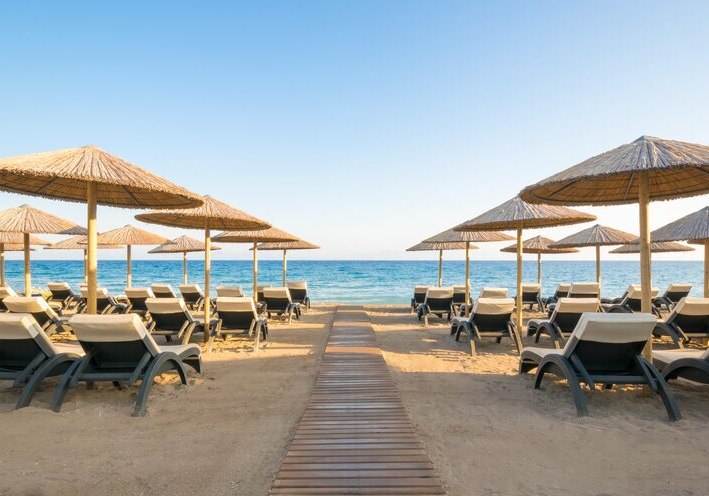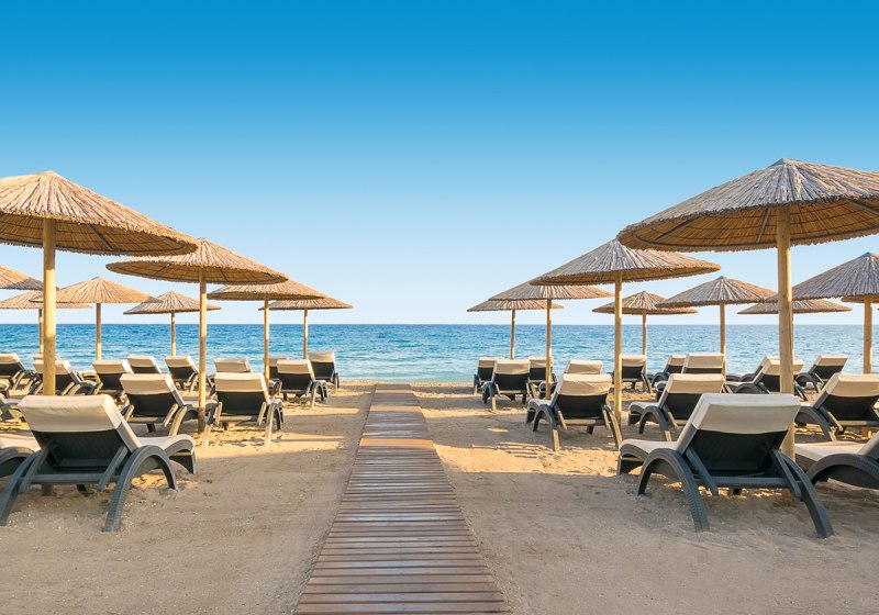 - Privatstrand: Reservierter Abschnitt am Ixia Beach mit Ausstattung.