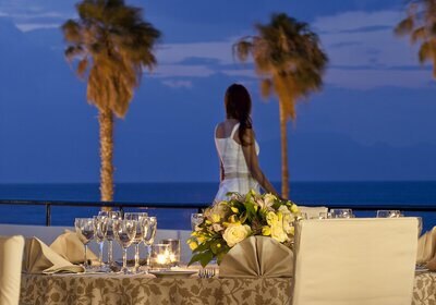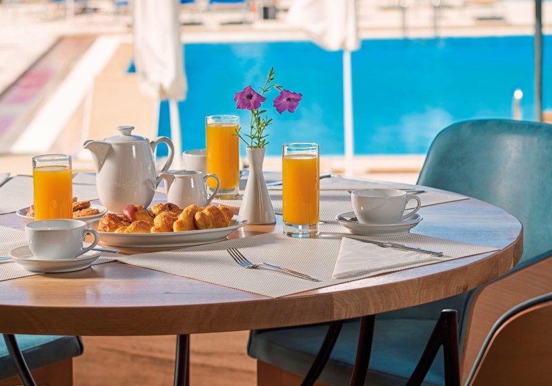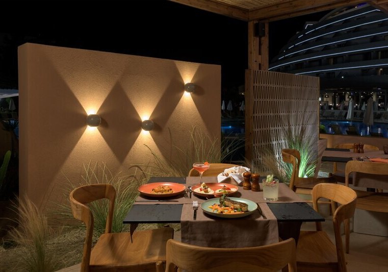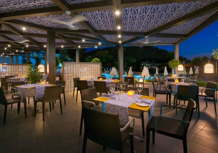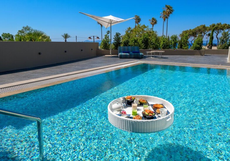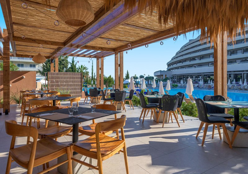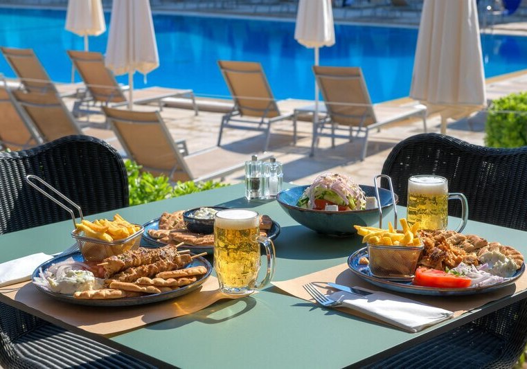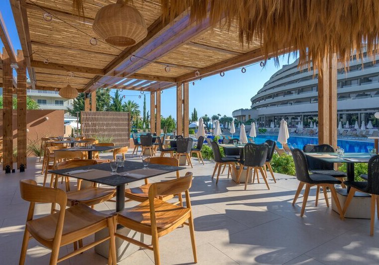 Bei der Verpflegung wählt Ihr zwischen Übernachtung mit Frühstück, Halbpension, All-Inclusive sowie À-la-carte- und Snack-Angeboten. Kindermenüs, Begrüßungsgetränk, Zimmerservice, Minibar und alkoholfreie wie alkoholische Getränke runden das Bild ab. Highlight: Die Sky-Bar liefert Drinks mit Weitblick über Ixia.
