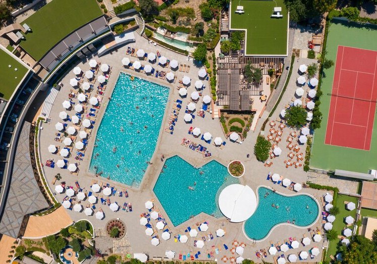 - Pool-Trio: Drei Außenpools plus separater Kinderpool.