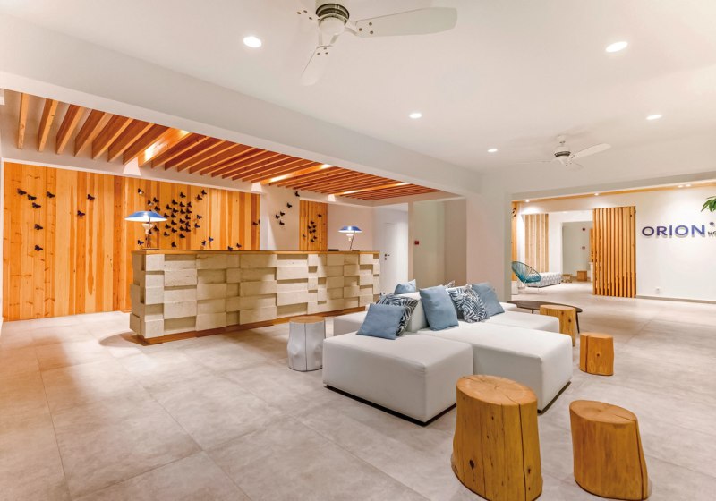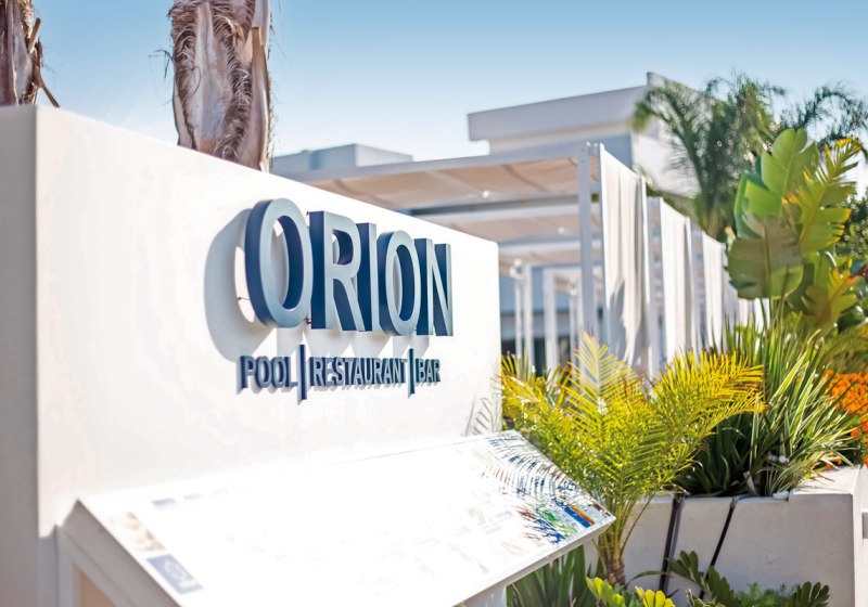 Im Orion Hotel wohnt Ihr in einem Haus mit Haupt- und drei Nebengebäuden, 109 Zimmern auf drei Etagen und einer 24-Stunden-Rezeption. Die Atmosphäre wirkt klar strukturiert, mit kurzen Wegen zwischen Empfangsbereich, Garten und Poolzone. Highlight: Küstennähe-Charme. Der Strand liegt nah, der Ablauf bleibt unkompliziert und angenehm.