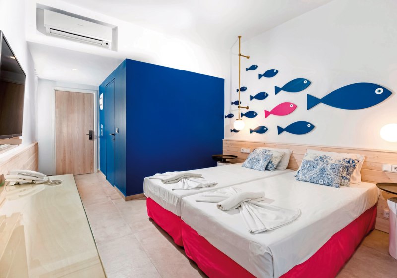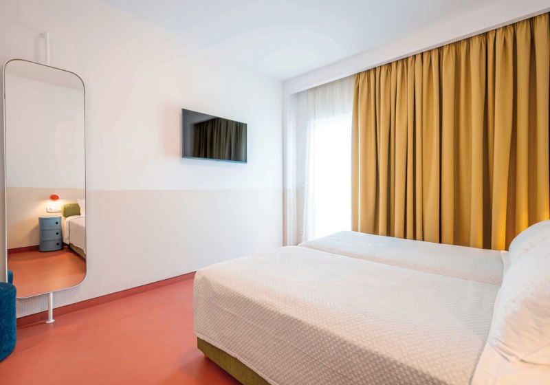 Der öffentliche Bereich ist funktional gegliedert: Empfangshalle mit 24-h-Rezeption, WLAN inklusive, Hotelsafe und Gepäckraum. Draußen wartet der Pool mit separatem Kinderbecken, Sonnenterrasse sowie Liegen und Schirmen am Pool inklusive. Highlight: Klare Struktur. Kurze Wege, eindeutige Zonen, entspannter Ablauf in den Ferien.
