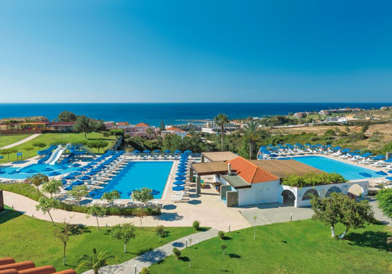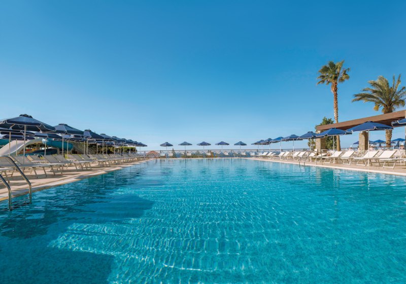 - Poolvielfalt: Mehrere Außenpools, Wasserrutschen und separater Kinderbereich.