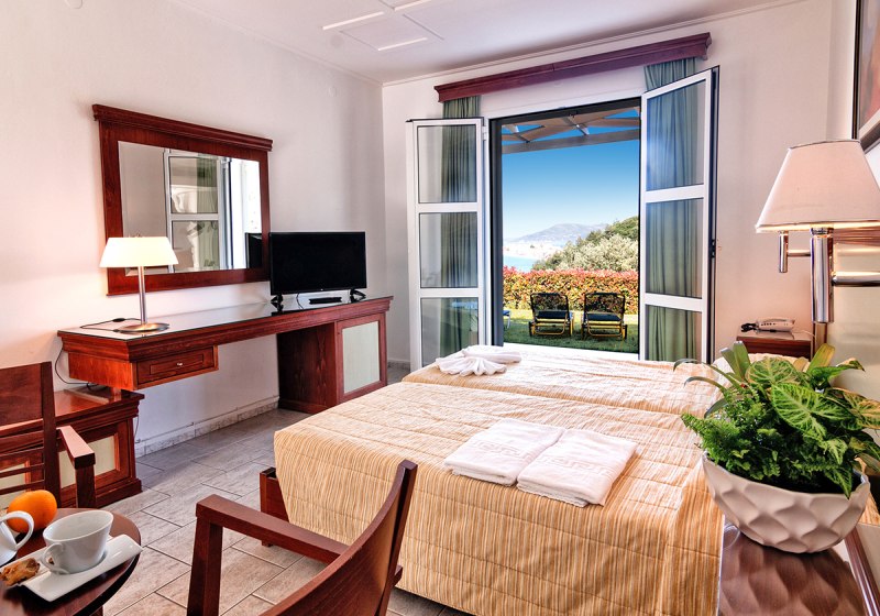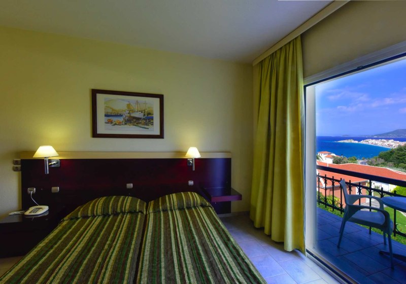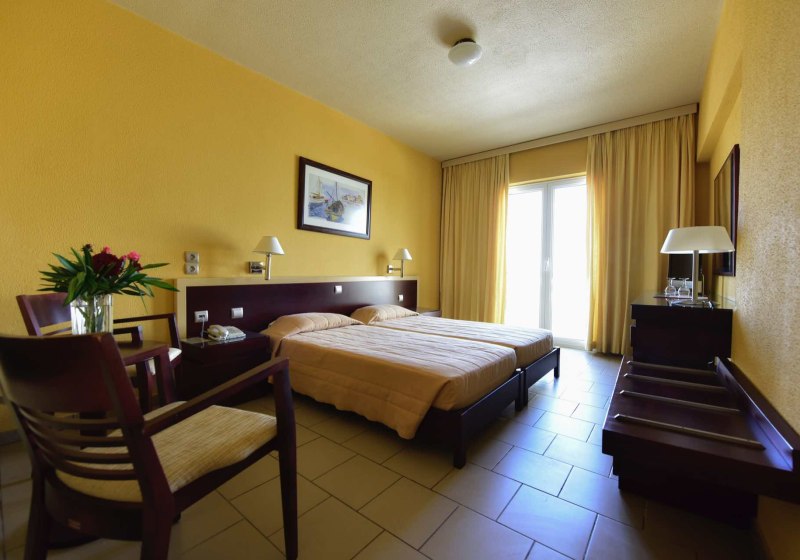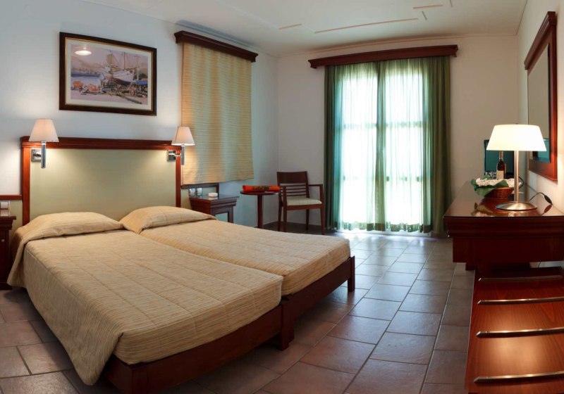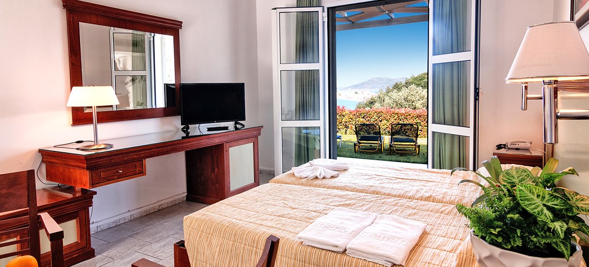 Ihr wohnt in Doppelzimmern, Bungalows, Einzelzimmern (Doppelzimmer zur Alleinbenutzung) oder Familienzimmern. Zur Ausstattung zählen Klimaanlage, WLAN, Sat-TV, Telefon und eine Musikanlage. Kühlschrank, Balkon oder Terrasse gehören ebenso dazu – praktisch für ruhige Stunden mit Aussicht in Garten, Berge oder aufs Meer.