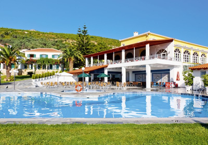 Ihr wählt zwischen Hotelzimmern und Bungalows, entspannt an Pool und Liegewiese oder nutzt den hoteleigenen Shuttlebus. Familien schätzen das Kinderbecken, Aktive die Möglichkeiten von Tischtennis bis Fahrradverleih. Wer Abwechslung sucht, erreicht Kokkari nach kurzer Strecke. Abends klingt der Tag an Bar oder Pool-Snackbar angenehm aus.
