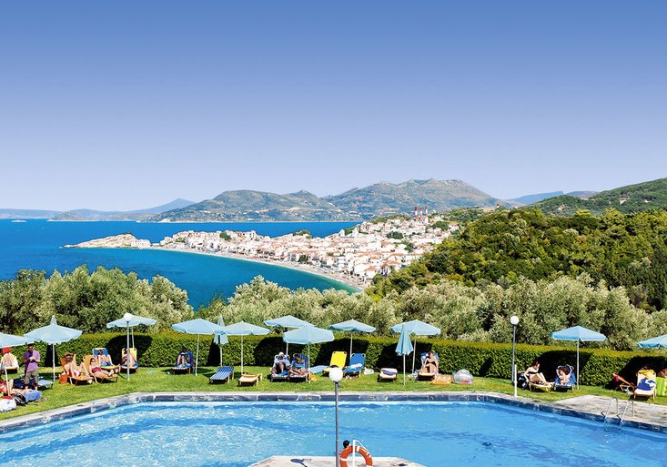 Arion Hotel verbindet die aussichtsreiche Hanglage über der Lemonakia-Bucht mit kurzen Wegen zum Strand und nach Kokkari. Pool, Kinderbecken und klare Strukturen machen den Alltag leicht, die Küche überzeugt mit Live-Kochen und flexiblen Verpflegungen.