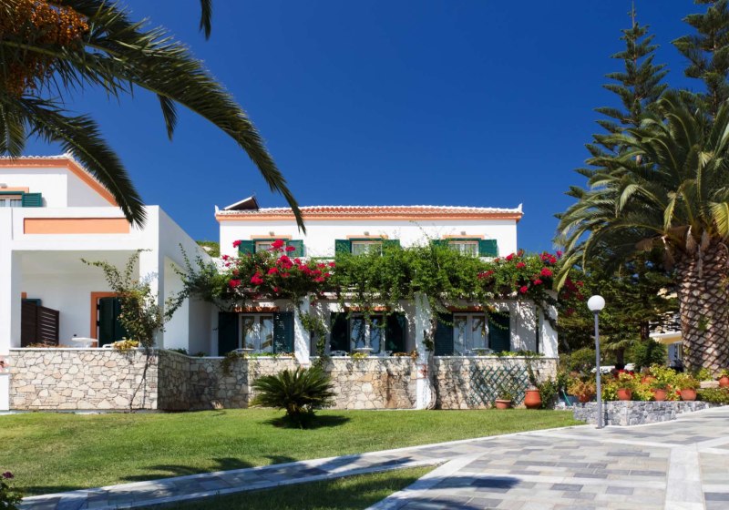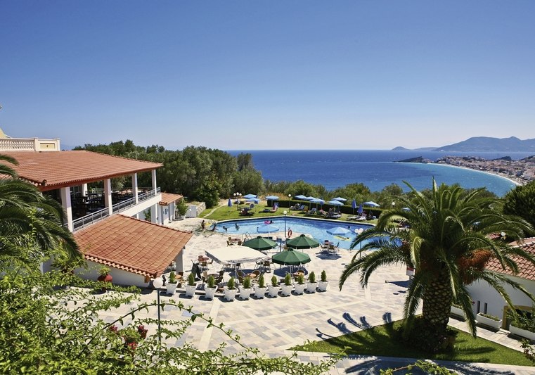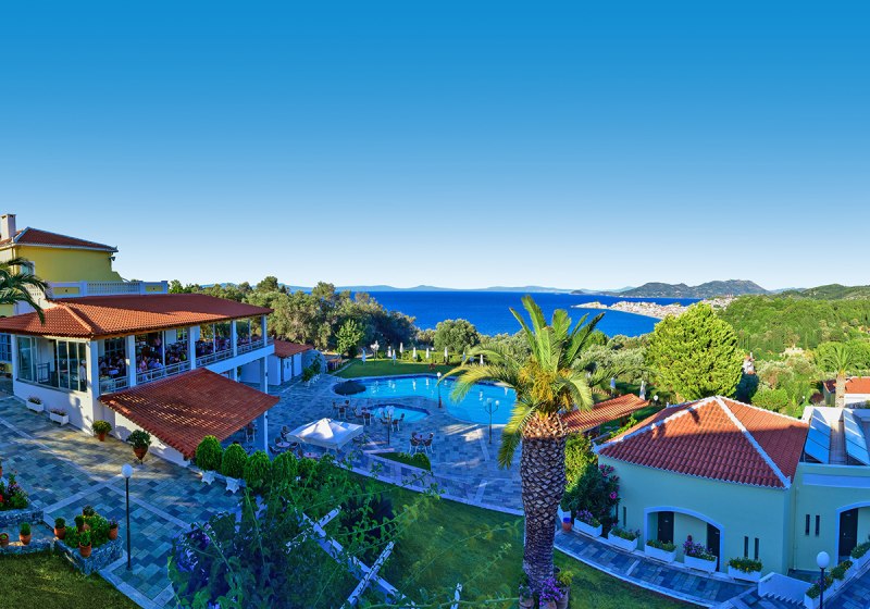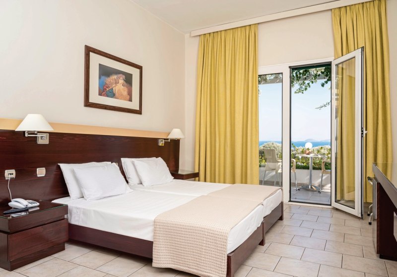 Arion Hotel ruht in Hanglage über der Lemonakia-Bucht und eröffnet Euch weite Ausblicke auf Meer und Küstenlinie. Die Atmosphäre wirkt entspannt und zugleich strukturiert: Wege führen vorbei an Gartenflächen zur Sonnenterrasse, dem Süßwasserpool und den geselligen Bereichen. Mit 108 Zimmern bleibt der Rahmen überschaubar, ohne Angebote zu sparen.