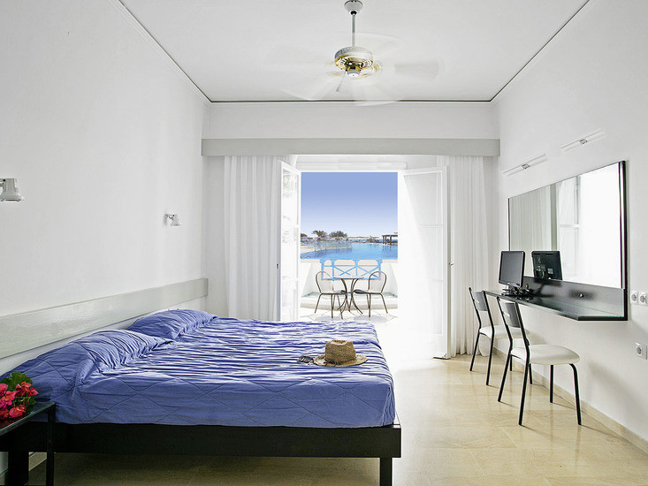 Die rund 100 Nichtraucherzimmer sind zweckmäßig ausgestattet: Klimaanlage, TV, WLAN, Telefon und Mietsafe sorgen für Komfort. Minikühlschrank, Balkon oder Terrasse sowie Bad mit Dusche oder Badewanne und Föhn gehören zum Standard. Fliesenboden und klare Linien unterstützen das luftige Mittelmeer-Gefühl.