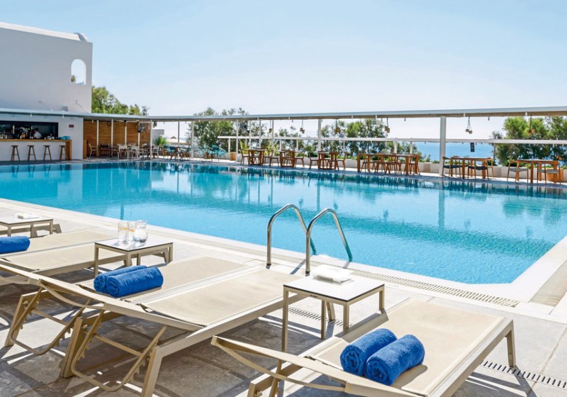 Das Kamari Beach Hotel punktet mit seiner Lage an der Promenade von Kamari, dem direkten Zugang zum schwarzen Lavastrand und einer klaren, funktionalen Anlage. Pool, Terrassen und kurze Wege prägen Euren Tagesrhythmus – nah am Ort, nah am Meer.