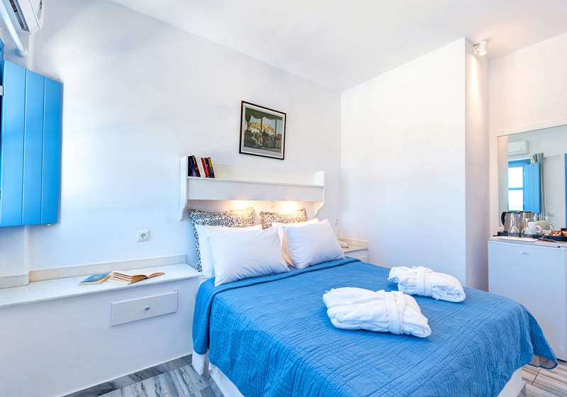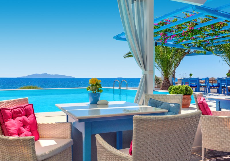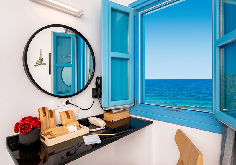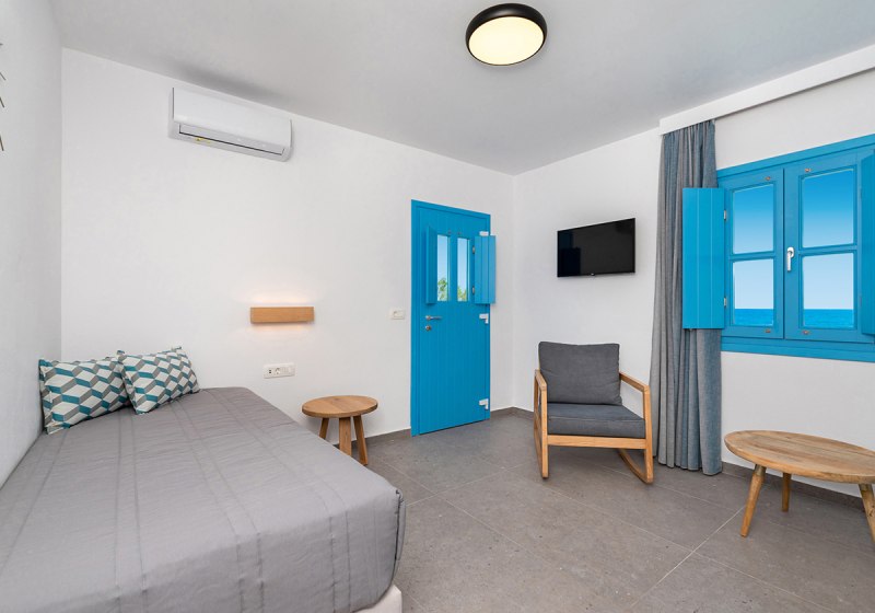 Für mehr Platz stehen Appartements im Nebengebäude bereit, teils mit zwei oder drei Schlafzimmern oder mit Kitchenette. So passt Ihr den Aufenthalt an Eure Bedürfnisse an – vom Paarzimmer bis zur familienfreundlichen Einheit mit separaten Schlafräumen. Highlight: Zimmer mit Meer- oder seitlichem Meerblick für den Blick auf die Ägäis.