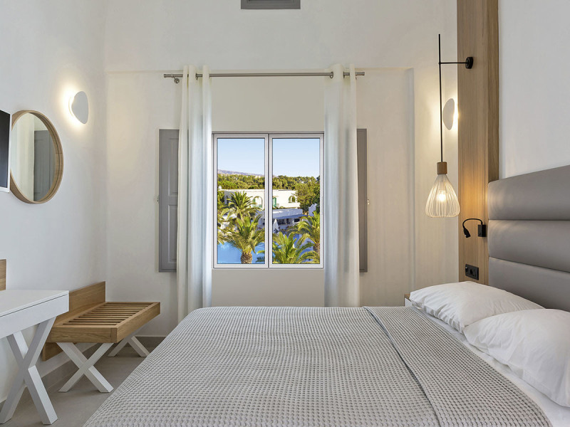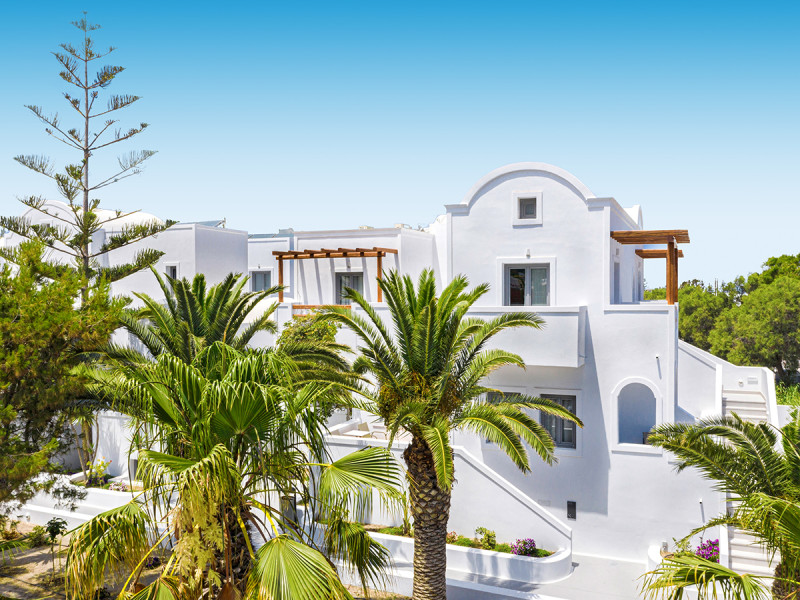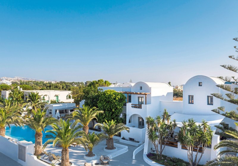 Mit 40 Zimmern, WLAN inklusive, Bar, Restaurant und Fitnessraum bleibt alles übersichtlich. Wellness- und Sportangebote sind vorgesehen und ergänzen den entspannten Ablauf. Wer Santorin kompakt erleben will, findet hier die passende Basis für die Ferien zwischen Strand, Dorf und Ausflügen.