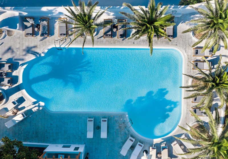 - Pool & Terrasse: Außenpool mit Liegen, Schirmen und Badetüchern.