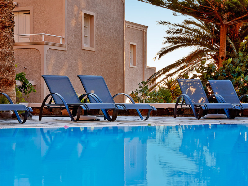 Ihr richtet Euch komfortabel ein und wählt Euren Takt selbst: morgens im Frühstücksraum, mittags eine Pause am Pool, abends ein kurzer Spaziergang Richtung Strand. Familien und Strandreisende finden hier einen unkomplizierten Ausgangspunkt, Paare schätzen die entspannte Atmosphäre ohne laute Programmpunkte. Einige Zimmer verfügen über eine Kitchenette, was Euch zusätzliche Freiheit gibt. Die Distanz von etwa 8 Kilometern nach Fira eröffnet Abwechslung zwischen Badezeit und Inselbummel.