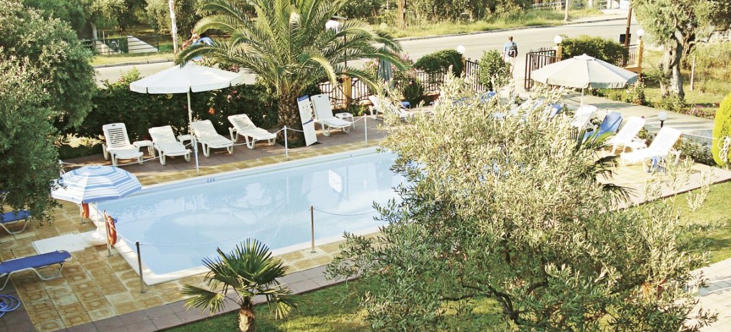 Mit nur 25 Wohneinheiten auf zwei Etagen bleibt der Aufenthalt angenehm persönlich. WLAN läuft in der gesamten Anlage, an der Rezeption werdet Ihr auf Deutsch und Griechisch angesprochen. Morgens erwartet Euch ein Frühstücksbuffet, tagsüber serviert die Poolbar Erfrischungen. Die offizielle Landeskategorie von drei Sternen spiegelt die solide Ausstattung wider. Highlight: Überschaubares Haus mit Garten, Terrasse und Pool – ideal für ruhige Strandtage.