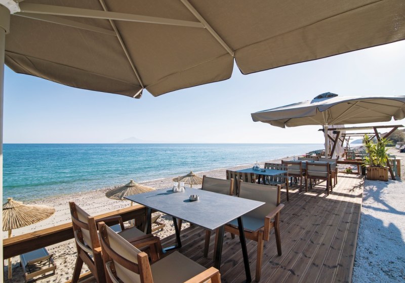 Hotel Aegean Infinity Deluxe - Limenaria versteht Erholung als ruhige Zeit am Wasser. Einen ausgewiesenen Spa- oder Saunabereich gibt es nicht. Stattdessen nutzt Ihr den Außenpool mit Sonnenterrasse oder sucht Euch am flach abfallenden Kiesstrand einen schattigen Platz unter dem Schirm. So entsteht Raum für lässige Pausen ohne feste Taktung.