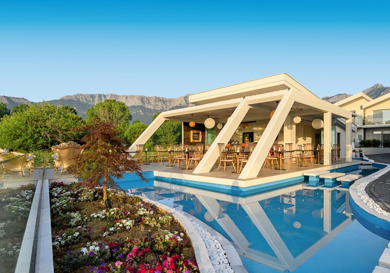 - Zwei Pools: Ein Pool mit zwei Jacuzzis setzt klare Erholungsakzente.