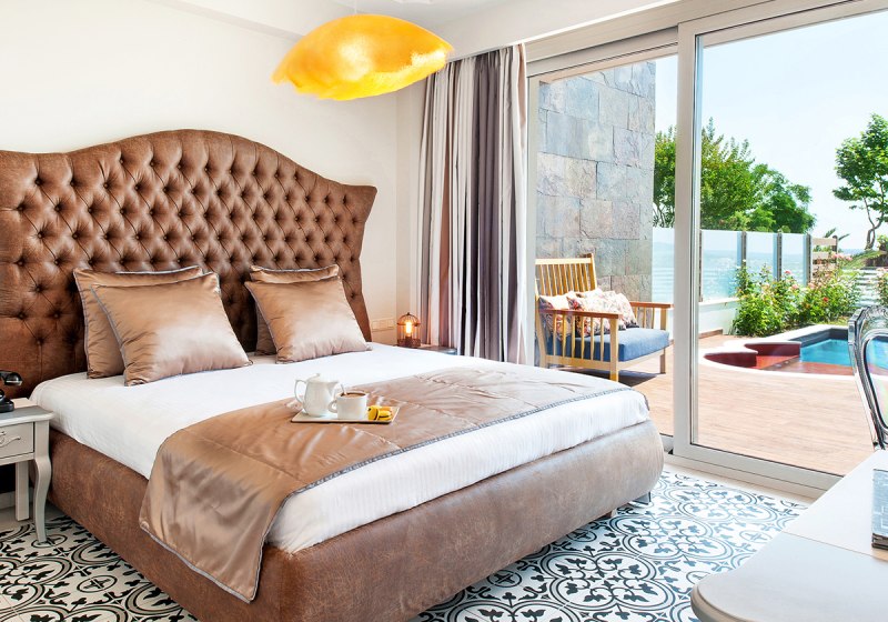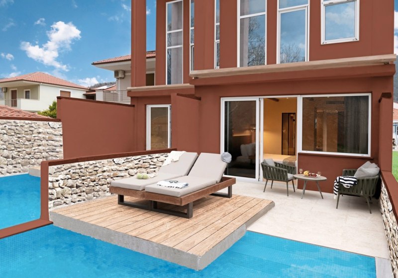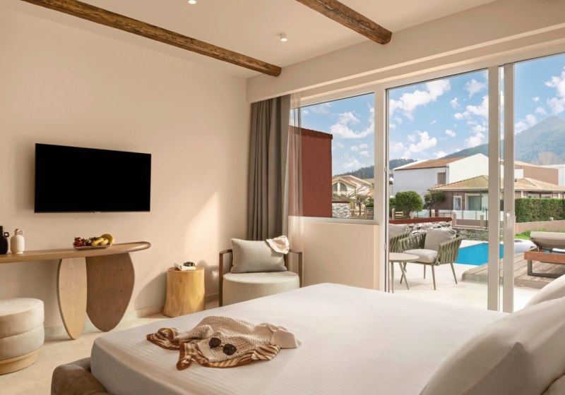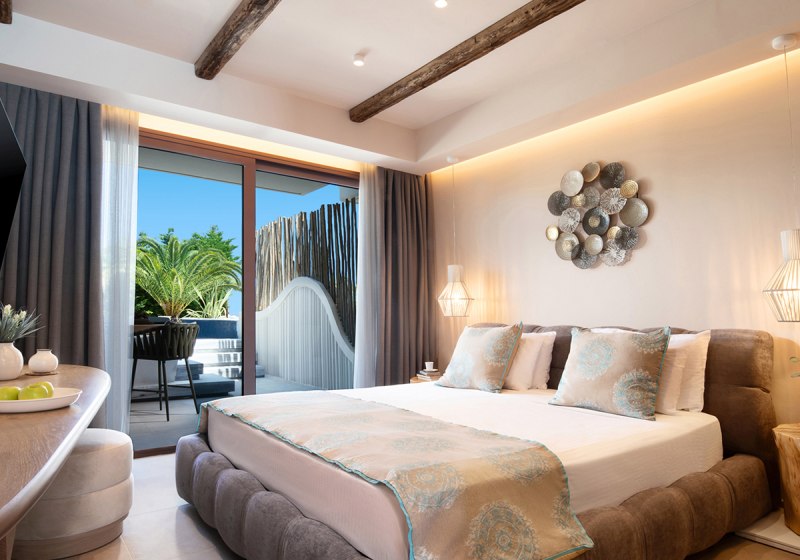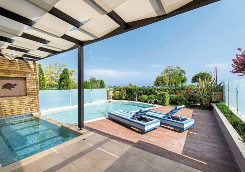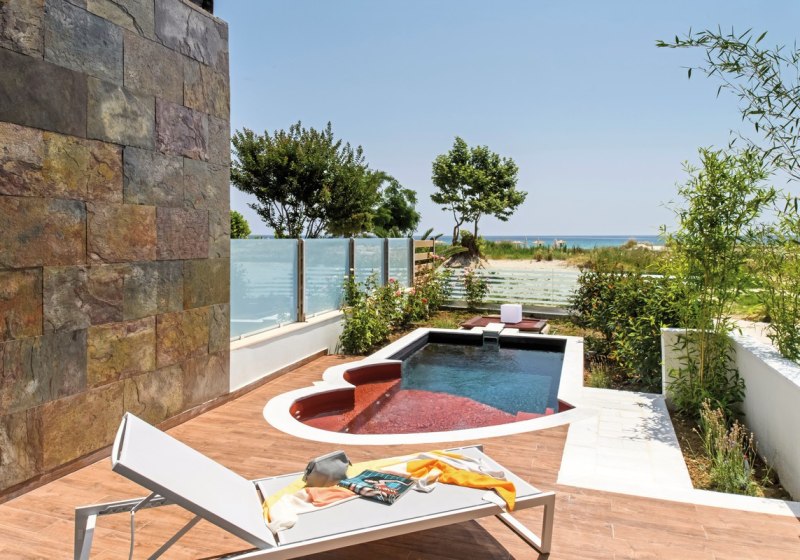 Für besondere Ansprüche wählt Ihr Suiten mit privatem Pool oder eine Maisonette auf zwei Etagen mit Jacuzzi-Badewanne; dort steht zusätzlich eine Kaffee- und Teezubereitung bereit. So entscheidet Ihr, ob Ihr den Tag im eigenen Wasser beginnt oder abends in der Wanne ausklingen lasst. Das Design bleibt auf Funktion und Wohlgefühl ausgerichtet – mit wenigen, klaren Akzenten.
