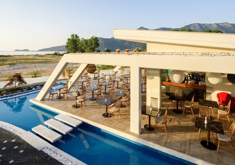 Im Alexandra Golden Boutique Hotel wohnt Ihr direkt am Golden Beach auf Thasos – mit dem Meer vor Augen und kurzen Wegen zwischen Strand, Pool und Bar. Das Boutique-Haus ist Adults Only ab 18 Jahren und richtet sich klar an Paare und Freunde, die Ruhe, Stil und klare Strukturen schätzen. Zwei Süßwasserpools, darunter ein Pool mit zwei Jacuzzis, rhythmisieren den Tag zwischen erfrischenden Runden und entspanntem Treibenlassen. Liegen, Sonnenschirme und Badetücher warten am Pool und am Strand, sodass Ihr Eure Zeit frei und unkompliziert planen könnt.