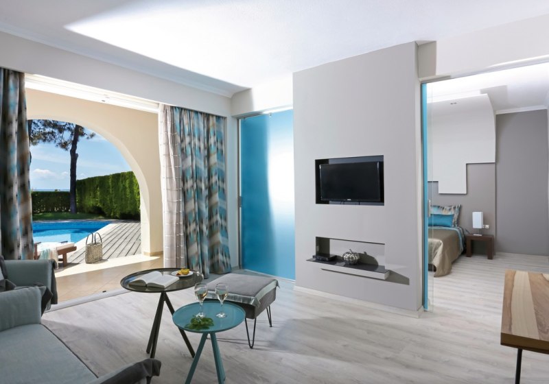 Wer Privatsphäre schätzt, wählt Zimmer mit Meerblick, Sharing‑Pool oder eine Suite mit privatem Pool. Maisonetten mit offener zweiter Etage setzen auf luftige Raumwirkung. Für Suiten liegen Bademäntel und Slipper bereit. So fühlt sich Euer Ferien auf Thassos individuell an – nah am Wasser, gut organisiert, mit klaren Strukturen.