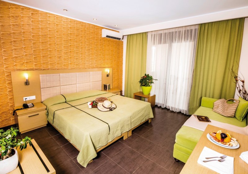 • Klimaanlage • Balkon (je nach Zimmerkategorie) • Kühlschrank • Haartrockner • Sitzecke (je nach Zimmerkategorie) • Minikühlschrank • Safe • Schlafsofa • Terrasse • Fernseher (Sat-TV) • rollstuhlgerechte Zimmer (auf Anfrage) • WiFi • Bergblick