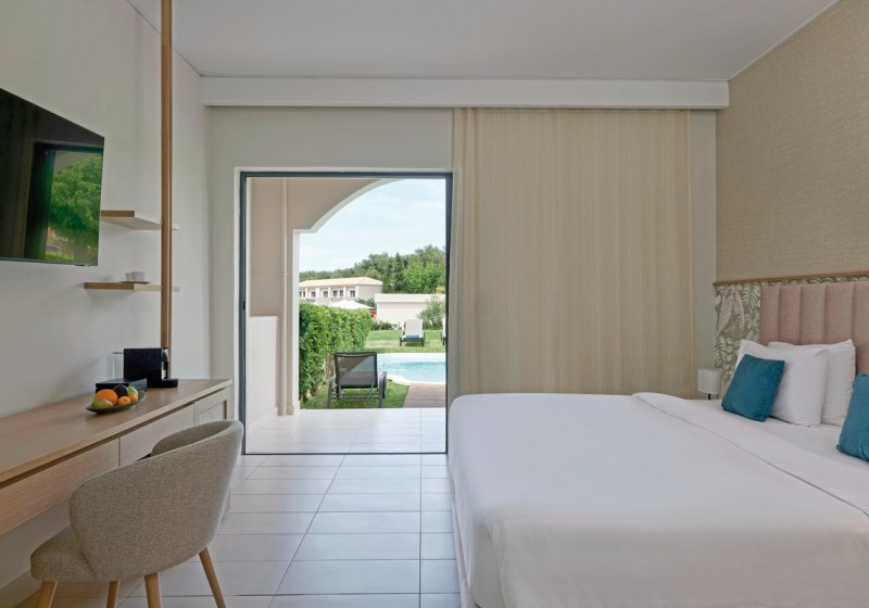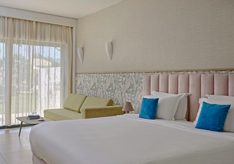 Eure Zimmer bieten Balkon oder Terrasse, Klimaanlage, TV und Bad mit Dusche oder Wanne. Ausgewählte Kategorien verfügen über Sofabett, Kitchenette oder privaten Pool. Juniorsuiten erhalten einen Sitzbereich, Familiensuiten einen separaten Essbereich – angenehm, wenn Ihr mehr Platz schätzt. Highlight: Zimmer mit optionalem Privatpool.