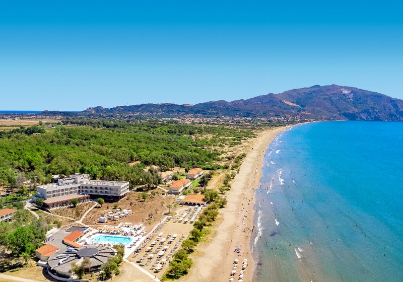 - Direktlage Strand: Unmittelbar am langen Strand der Laganas-Bucht auf Zakynthos.