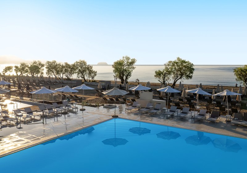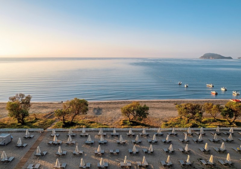 Domes Aulus Zante, Autograph Collection vereint direkte Strandlage an der Laganas-Bucht, renovierte Zimmer und ein klares All-Inclusive-Konzept mit ruhigen Zonen wie dem Adults-only-Pool. Die Küche punktet, die Wege sind kurz, das Wochenprogramm bleibt fokussiert.